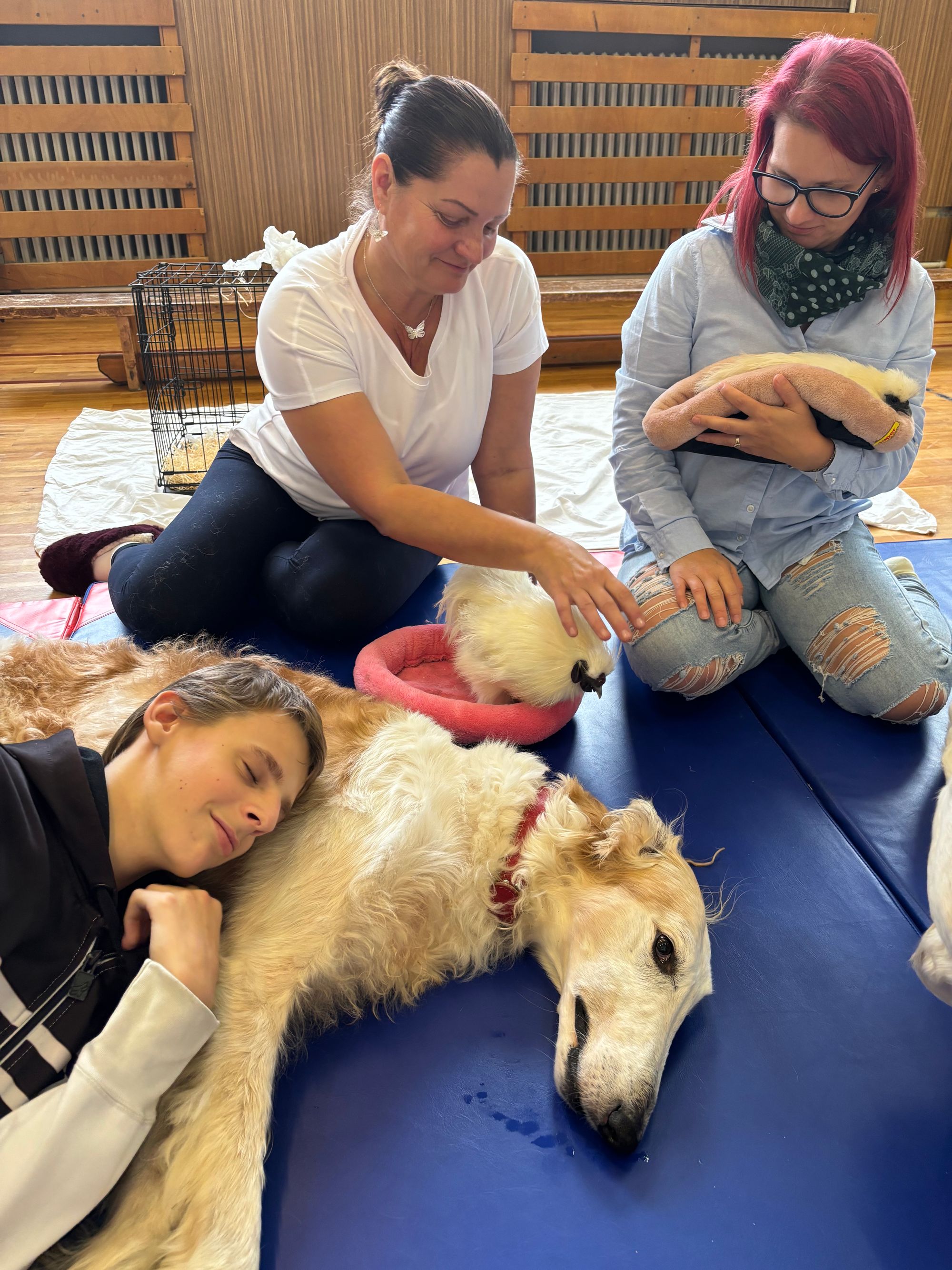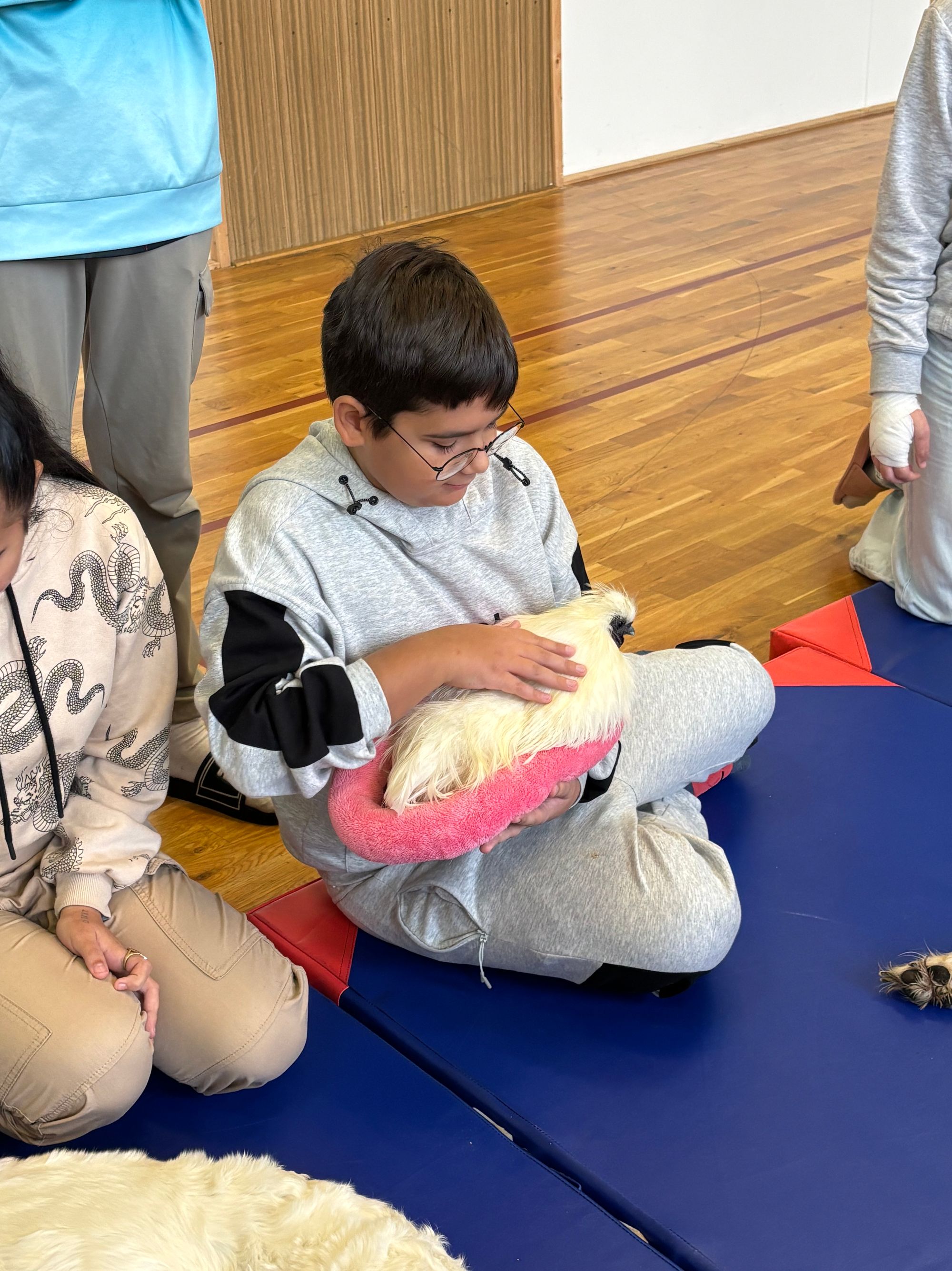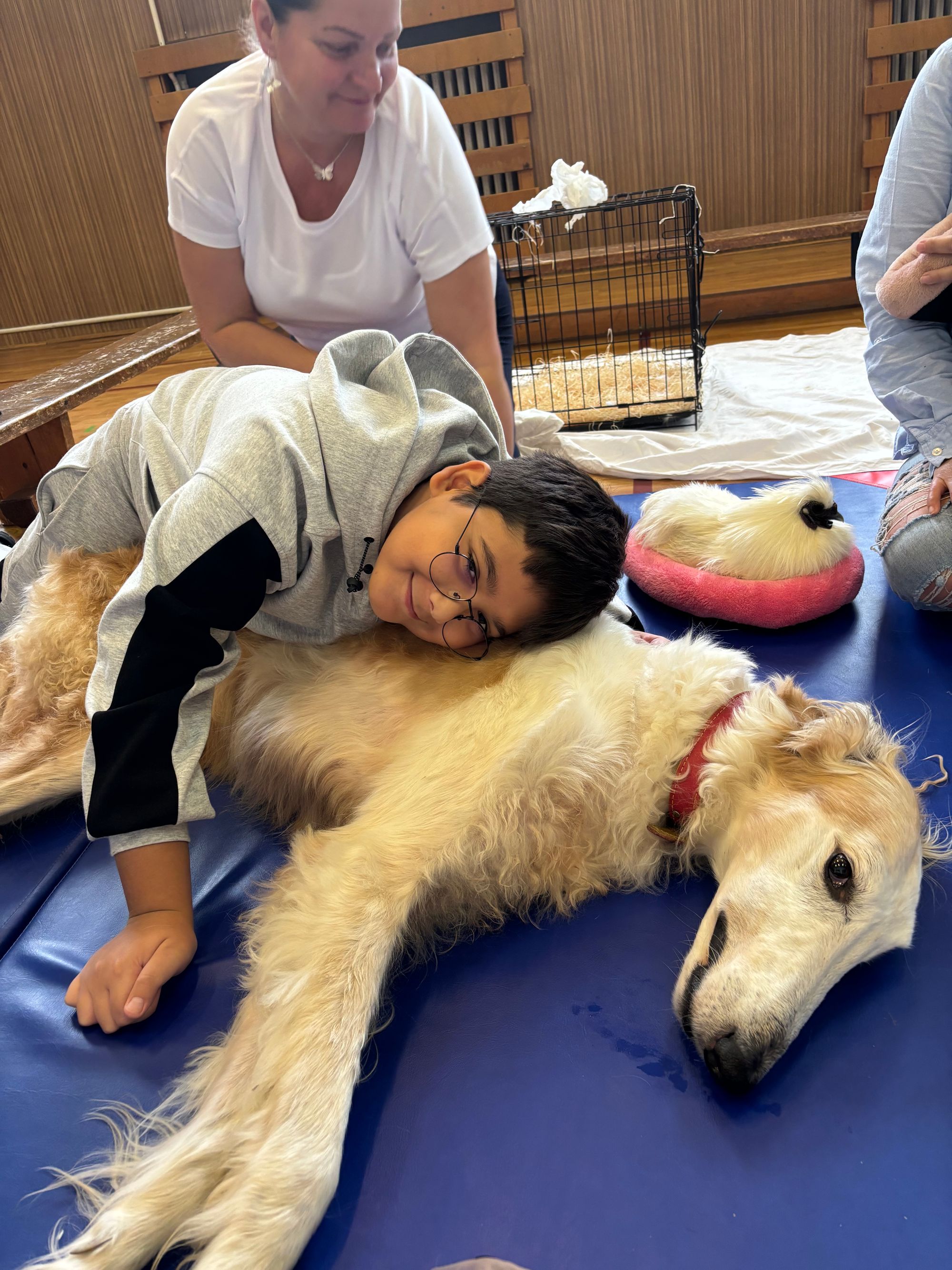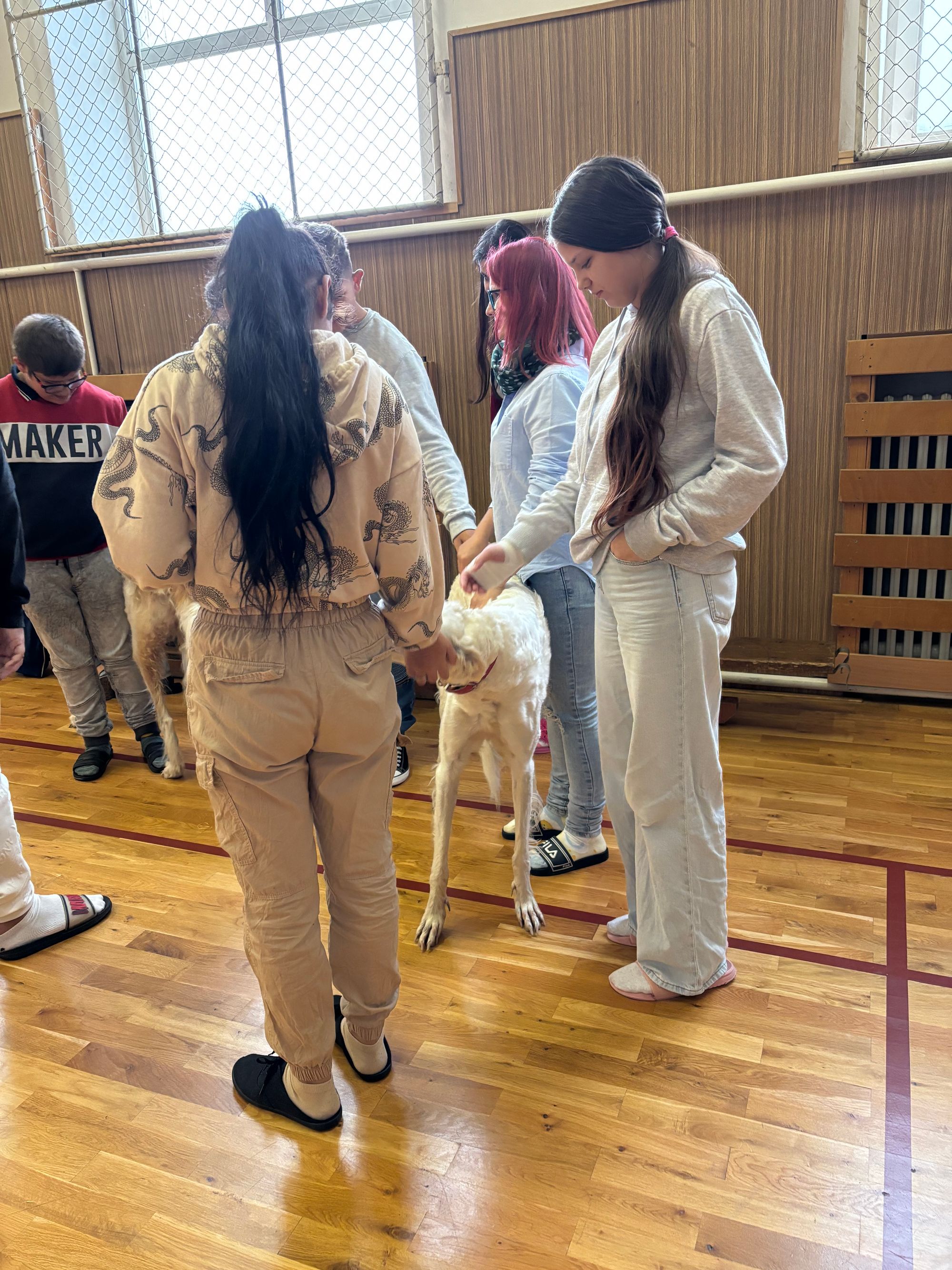 Na naší škole proběhla canisterapie, tentokrát poprvé i pro žáky 2. stupně praktických tříd. Do školy zavítali dva ruští chrti, kteří si okamžitě získali pozornost a sympatie všech žáků. Také slepičky hedvábničky, které děti mohly pohladit a pozorovat zblízka. Canisterapie pomáhá nejen rozvíjet vztah ke zvířatům, ale má i pozitivní vliv na psychiku a uvolnění svalů. Paní terapeutka byla velmi milá a trpělivá, vše dětem hezky vysvětlila a umožnila jim se do programu aktivně zapojit. O zábavný okamžik se postarala i jedna slepička, která během návštěvy hodila malý bobek, což vyvolalo mezi dětmi spoustu smíchu. Žáci si program velmi užili a už se těší na další setkání se zvířecími terapeuty.