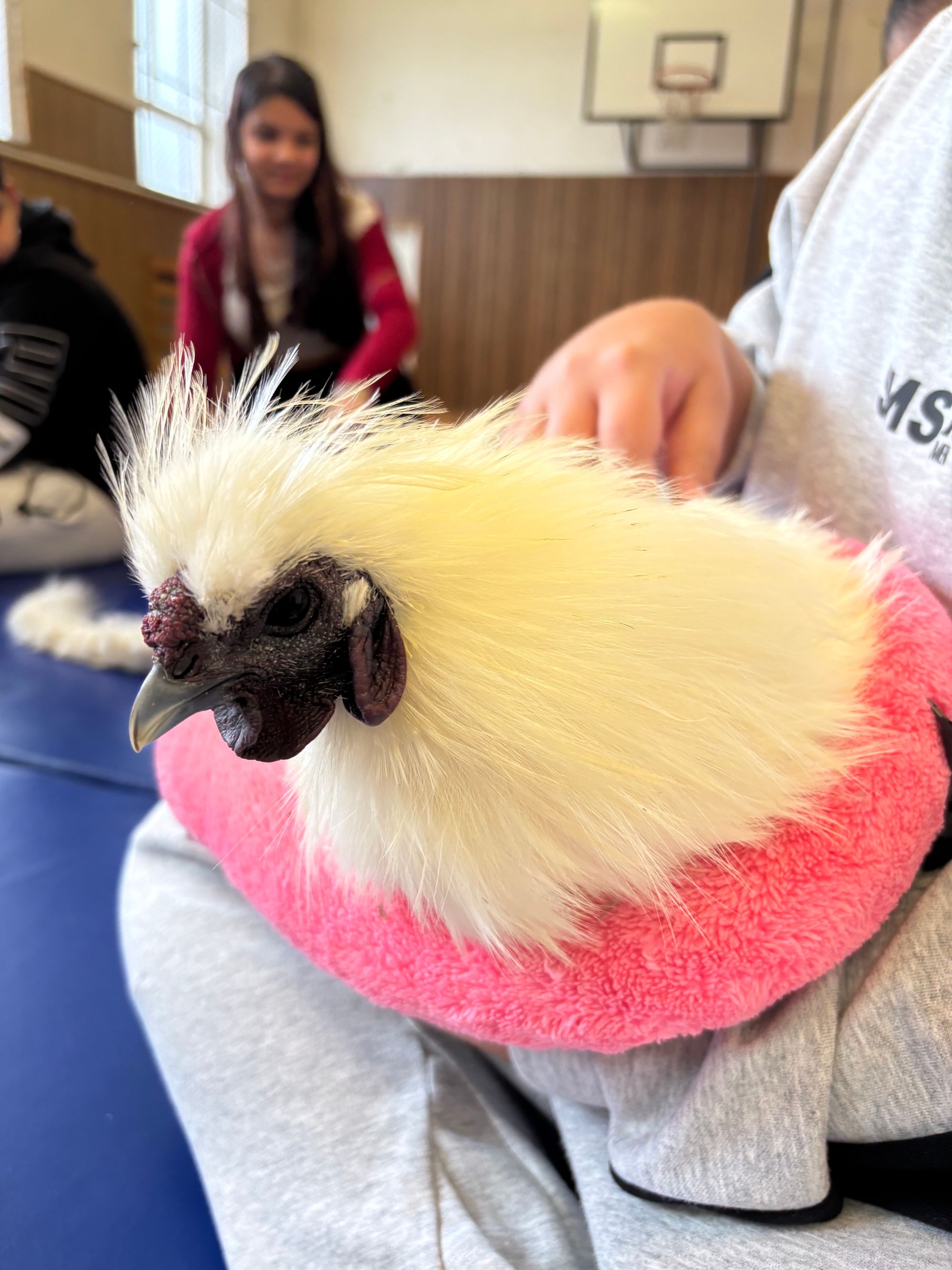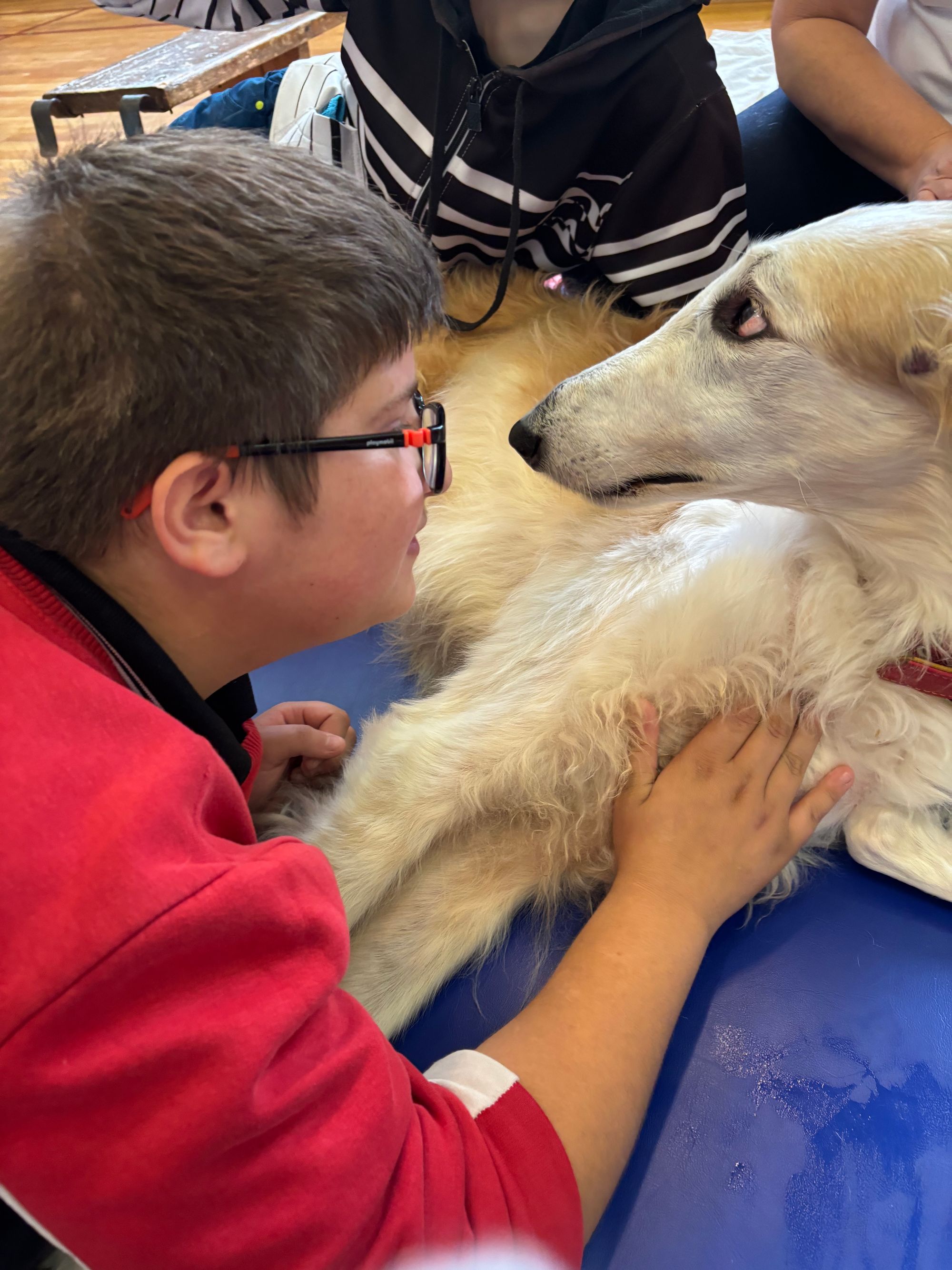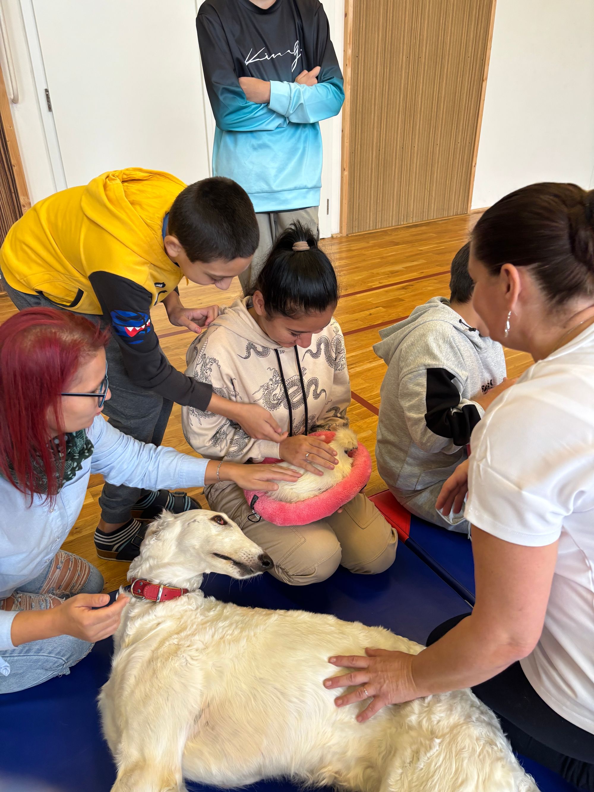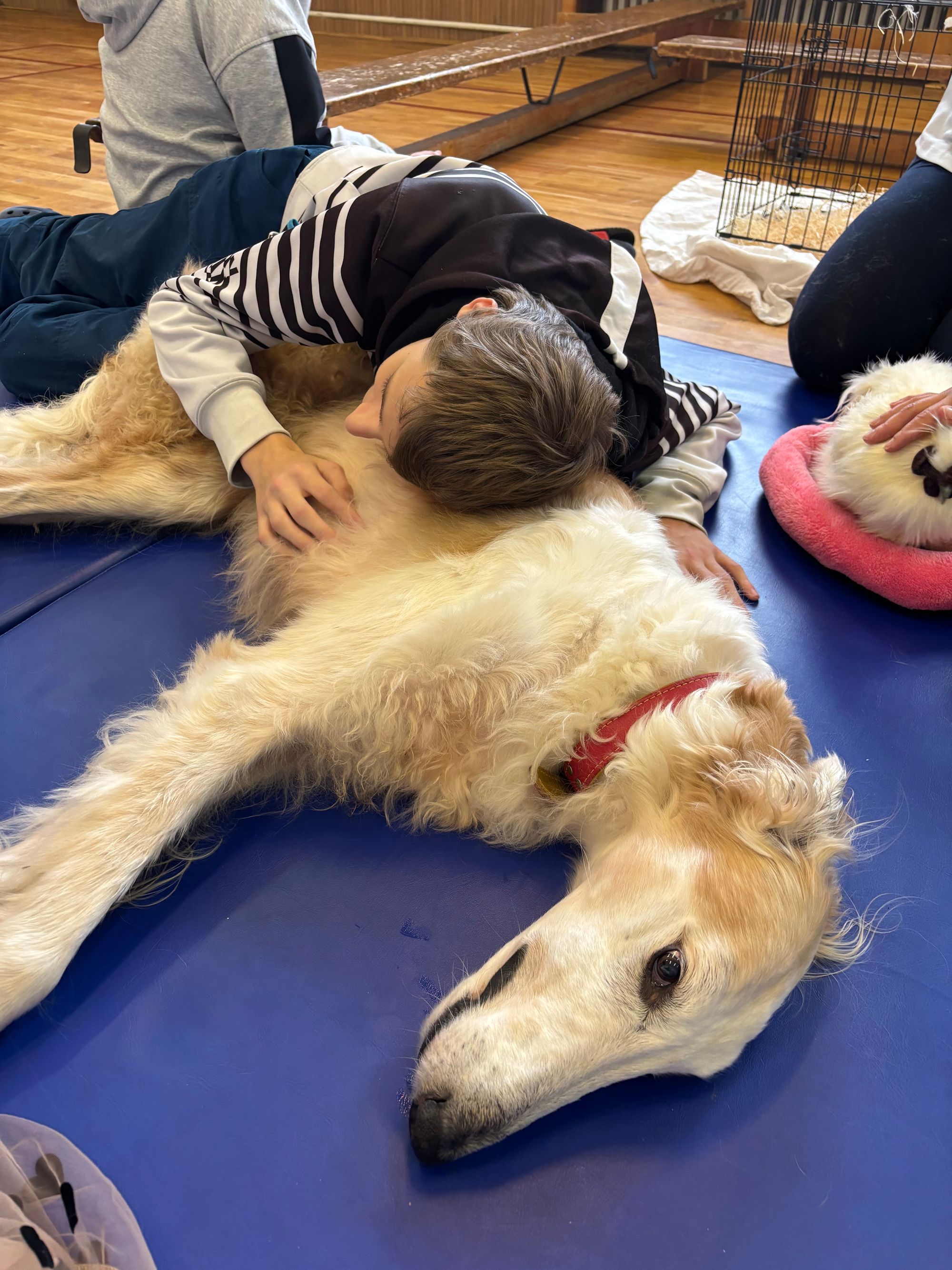 Na naší škole proběhla canisterapie, tentokrát poprvé i pro žáky 2. stupně praktických tříd. Do školy zavítali dva ruští chrti, kteří si okamžitě získali pozornost a sympatie všech žáků. Také slepičky hedvábničky, které děti mohly pohladit a pozorovat zblízka. Canisterapie pomáhá nejen rozvíjet vztah ke zvířatům, ale má i pozitivní vliv na psychiku a uvolnění svalů. Paní terapeutka byla velmi milá a trpělivá, vše dětem hezky vysvětlila a umožnila jim se do programu aktivně zapojit. O zábavný okamžik se postarala i jedna slepička, která během návštěvy hodila malý bobek, což vyvolalo mezi dětmi spoustu smíchu. Žáci si program velmi užili a už se těší na další setkání se zvířecími terapeuty.