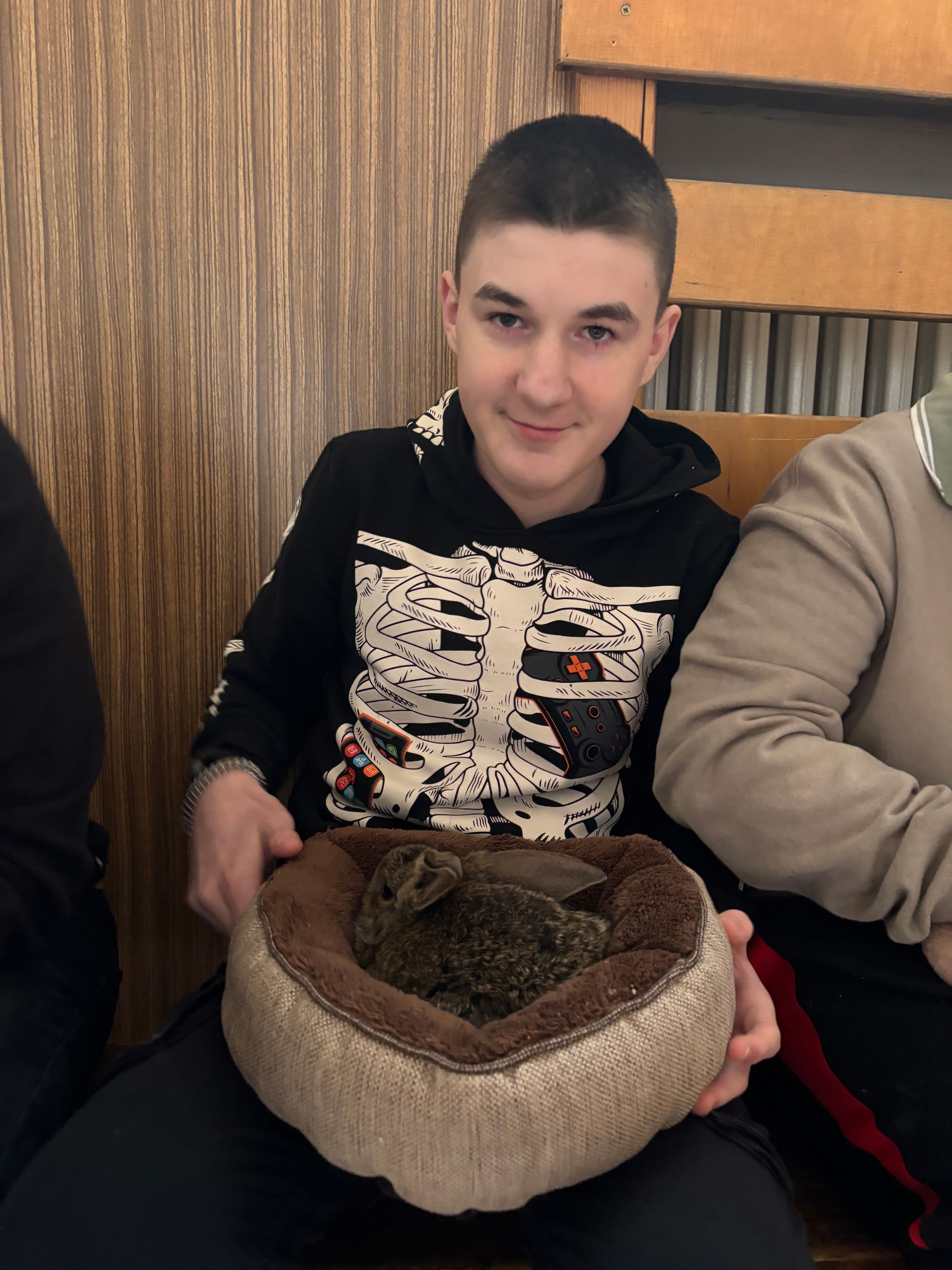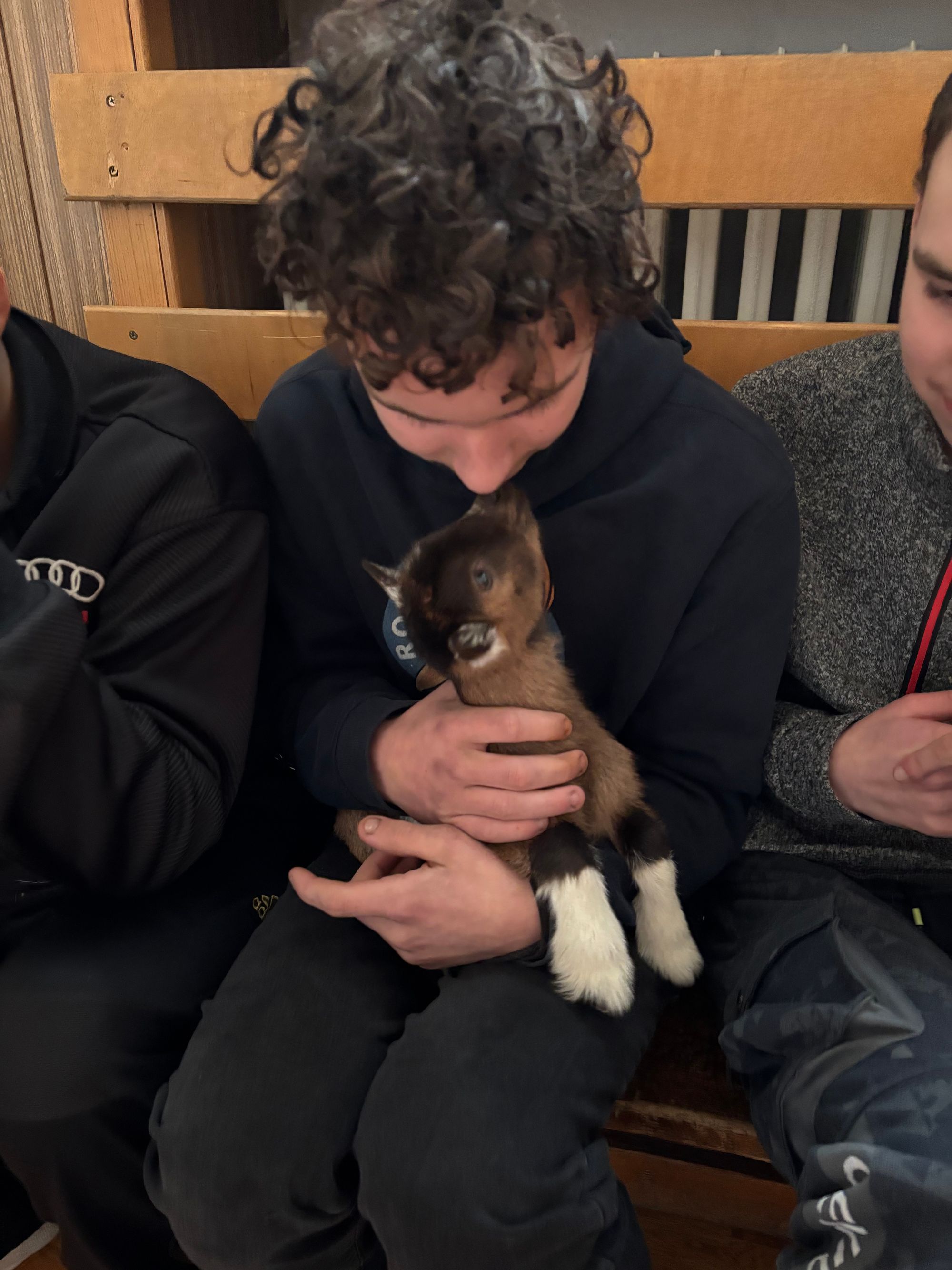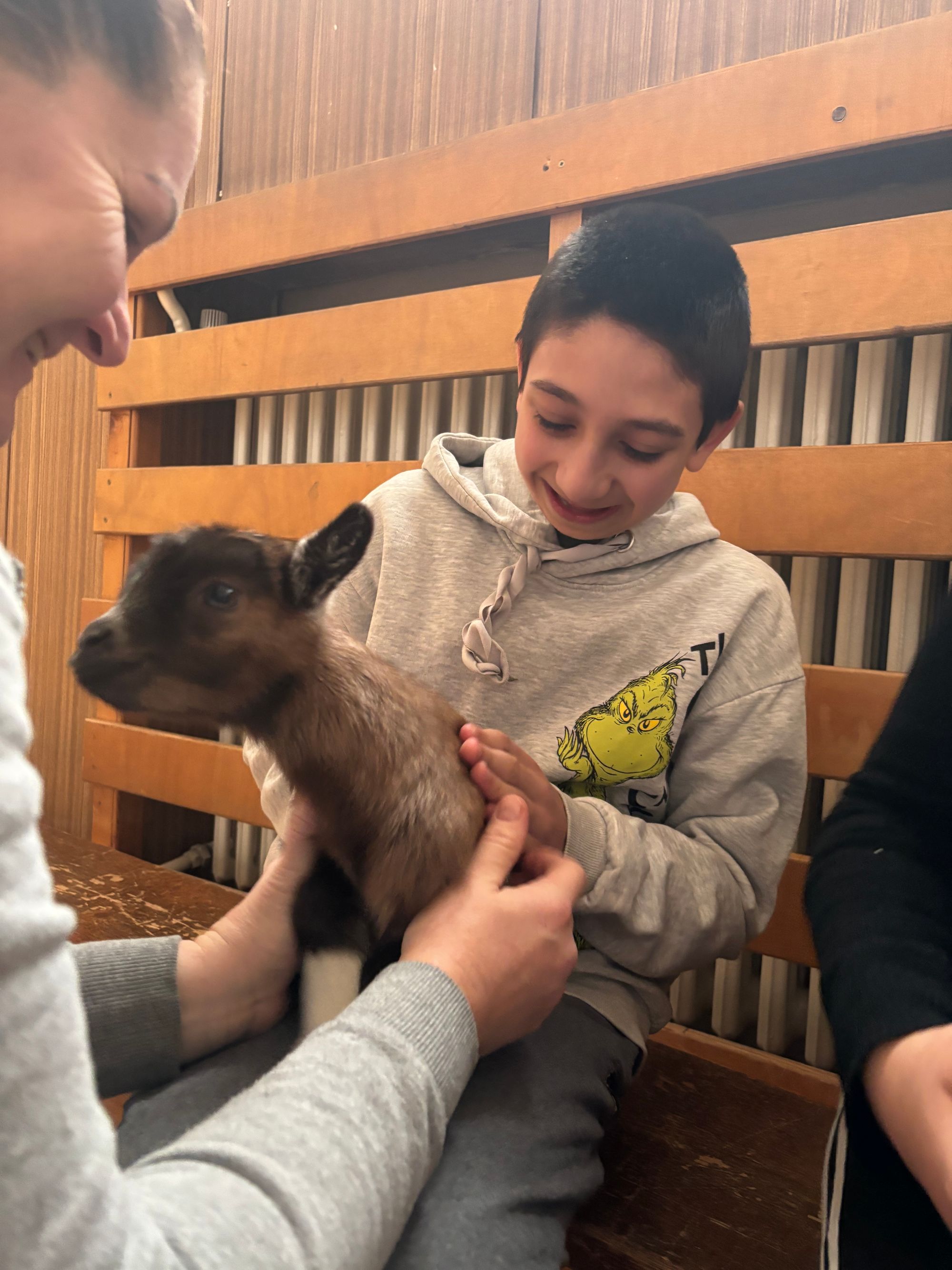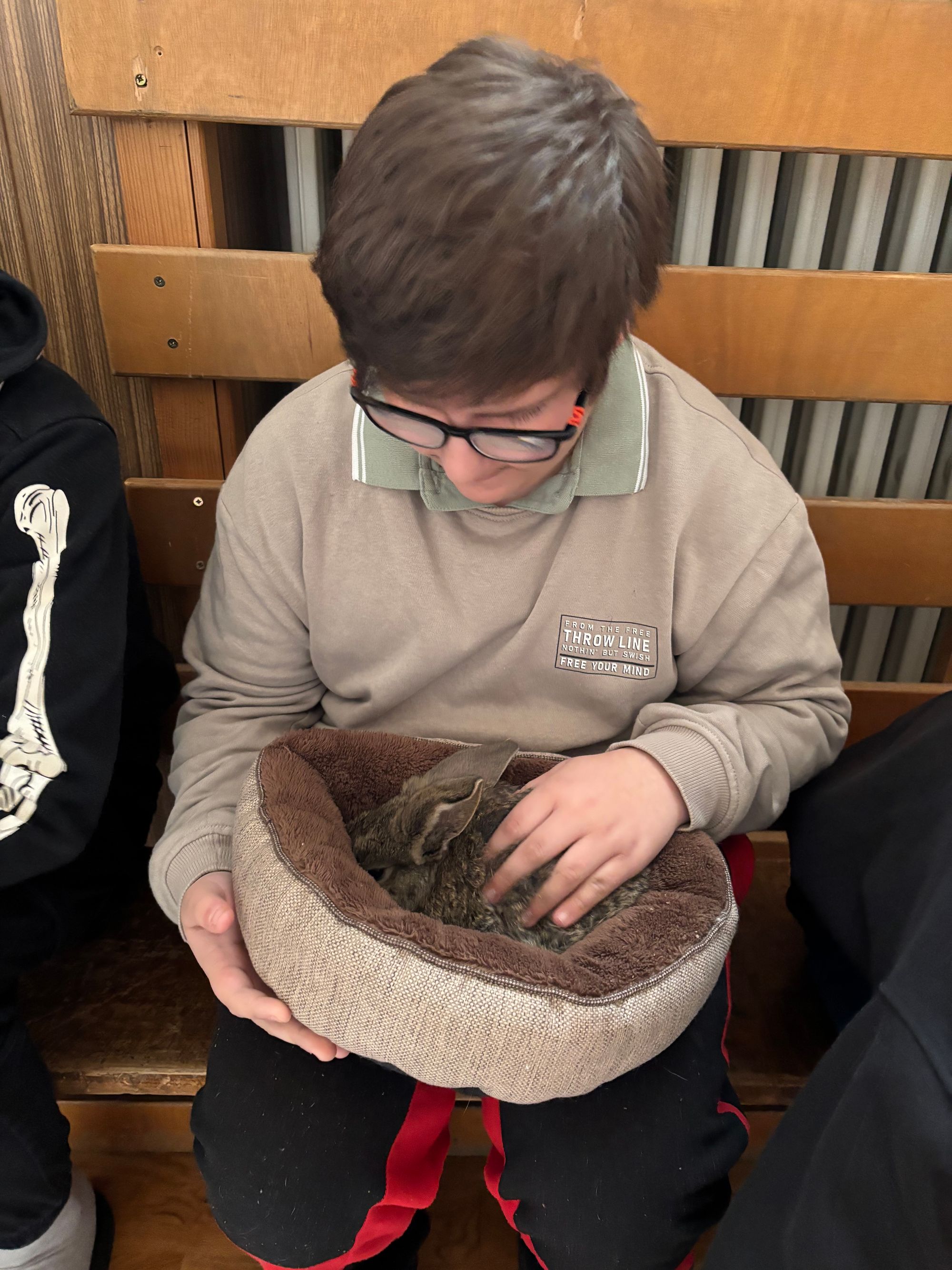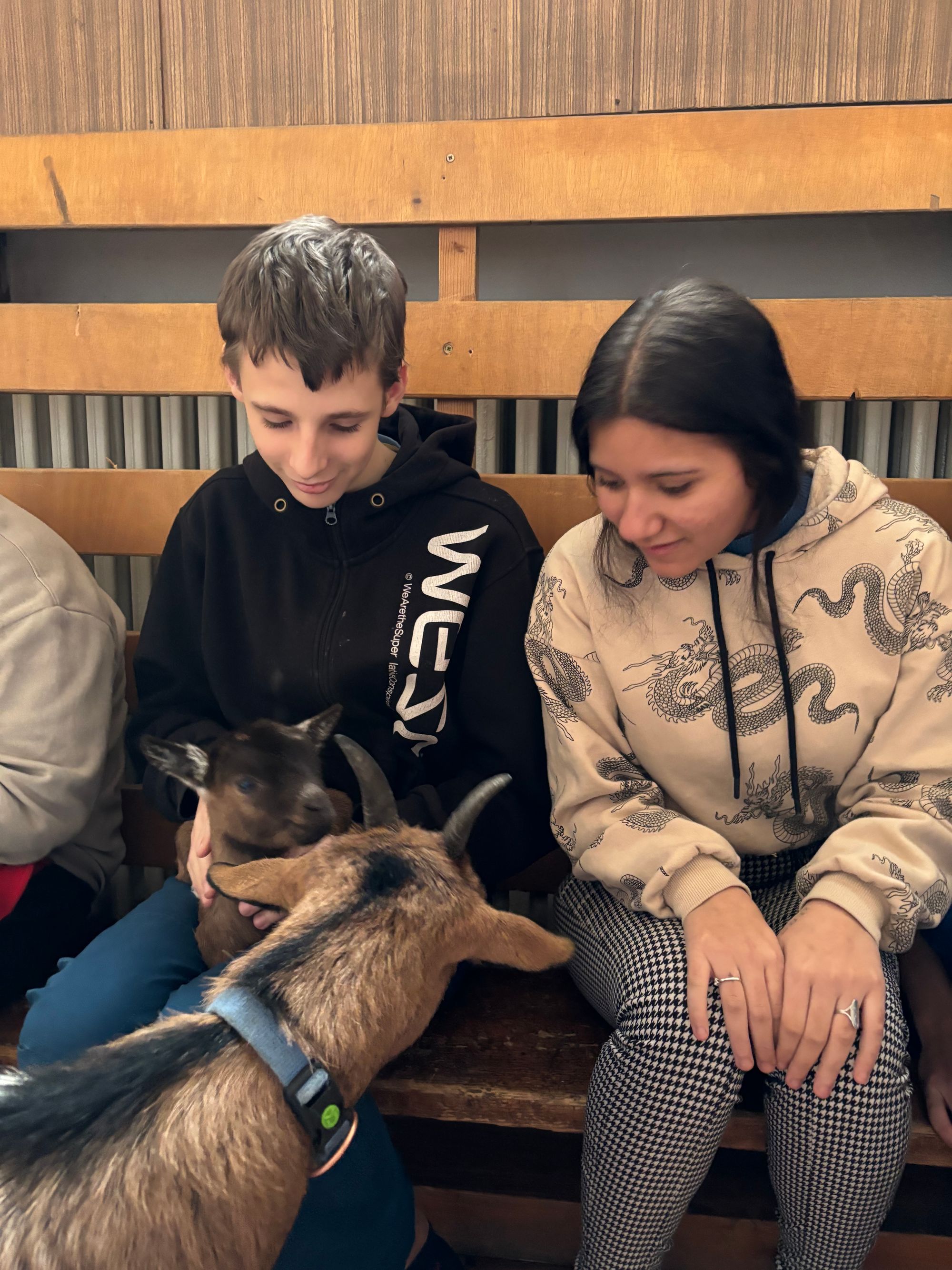 Dnešní canisterapie byla výjimečná svou rozmanitostí. Žáci se setkali s holandskou zakrslou kozou – maminkou i jejím mládětem, které bylo staré pouhý jeden týden. Tichý respekt s jakým děti ke zvířatům přistupovaly, byl sám o sobě důkazem, jak silný účinek může mít živý kontakt s přírodou. Mezi další terapeuty patřilo sedm hebkých králíčků, jako plyšáci, kteří si okamžitě získali srdce všech přítomných. Žáci si mohli zvířata pohladit, pozorovat jejich chování a vnímat jejich klidnou energii.