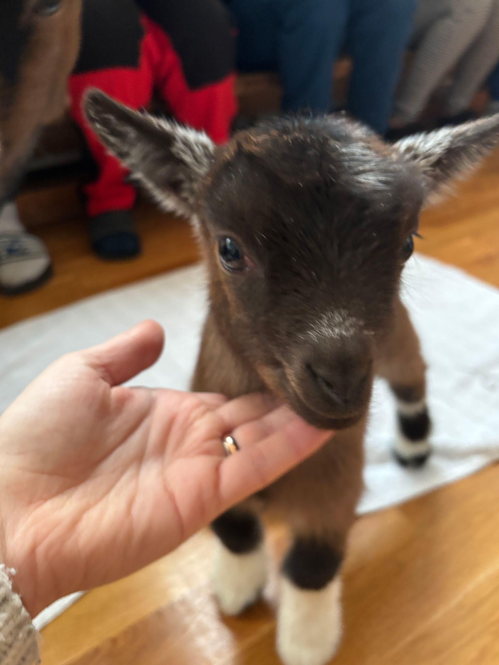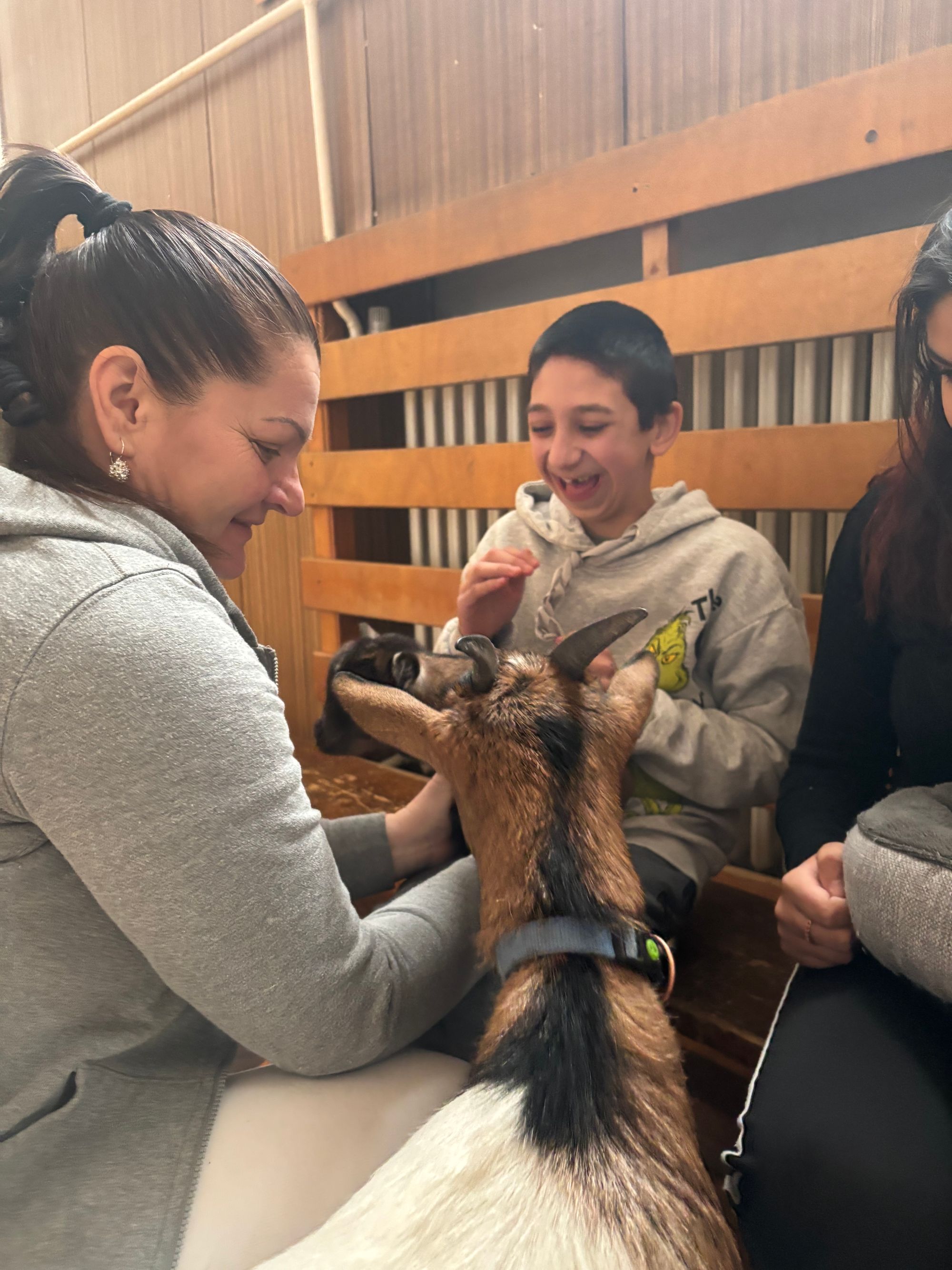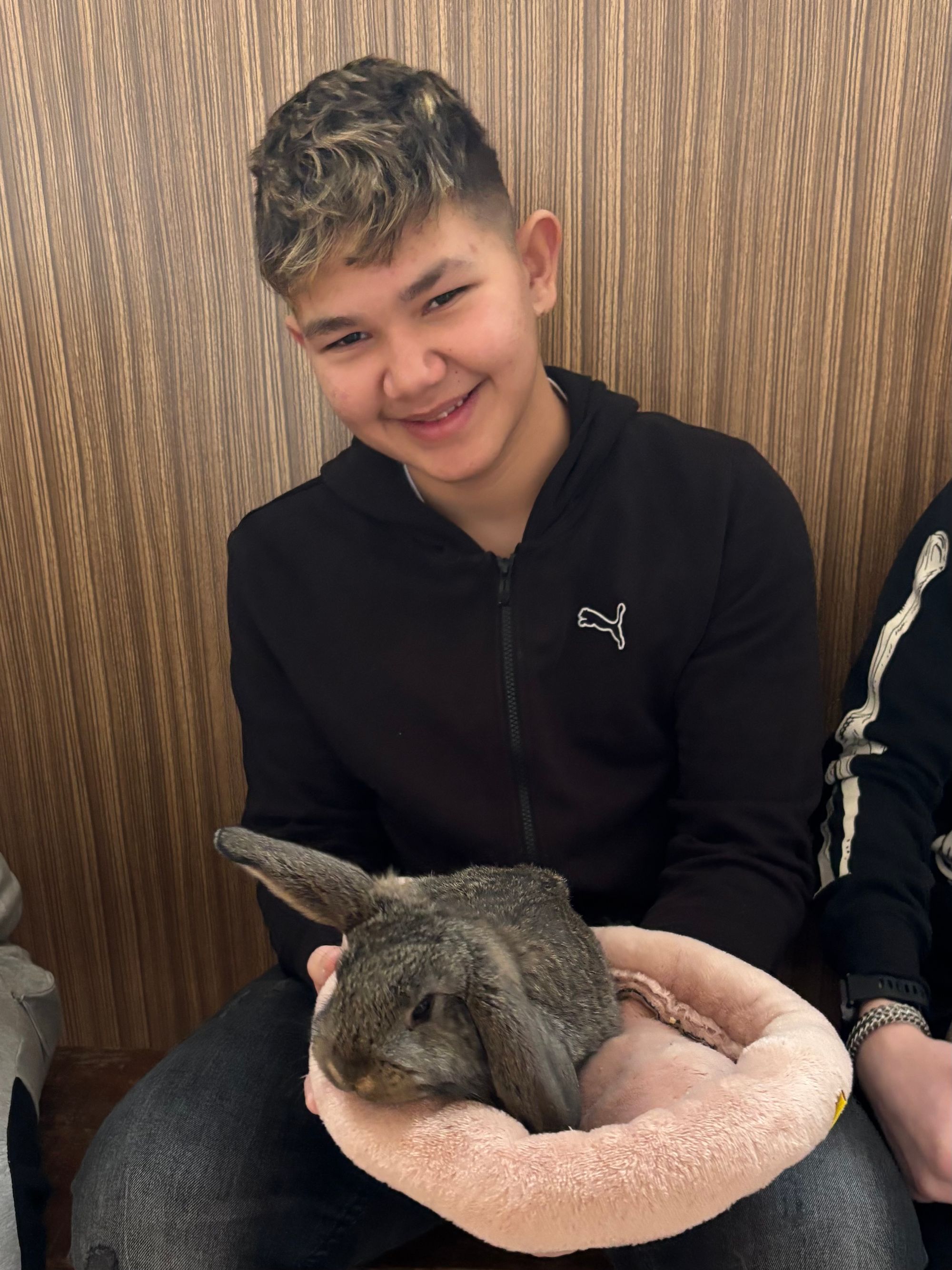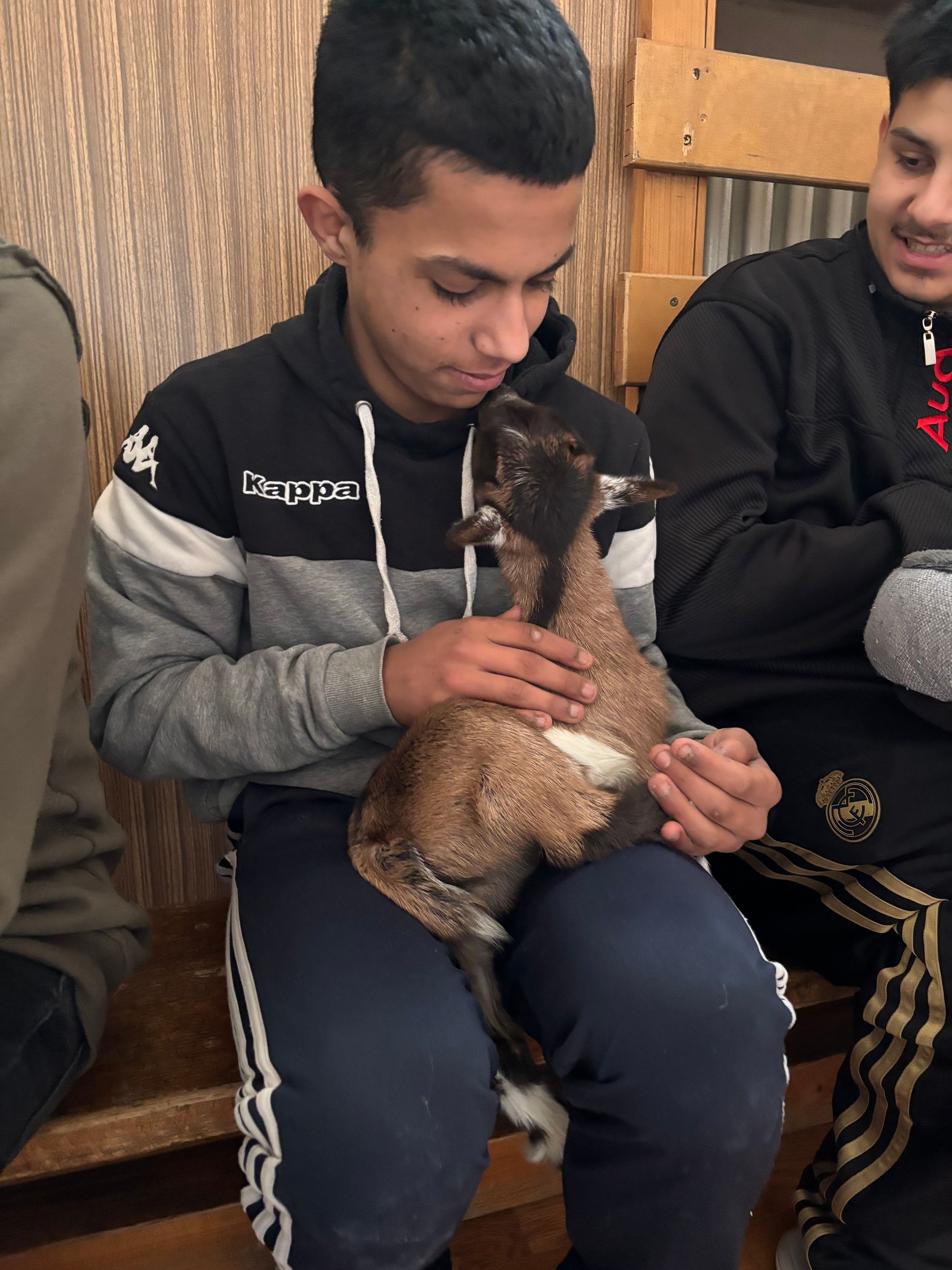 Dnešní canisterapie byla výjimečná svou rozmanitostí. Žáci se setkali s holandskou zakrslou kozou – maminkou i jejím mládětem, které bylo staré pouhý jeden týden. Tichý respekt s jakým děti ke zvířatům přistupovaly, byl sám o sobě důkazem, jak silný účinek může mít živý kontakt s přírodou. Mezi další terapeuty patřilo sedm hebkých králíčků, jako plyšáci, kteří si okamžitě získali srdce všech přítomných. Žáci si mohli zvířata pohladit, pozorovat jejich chování a vnímat jejich klidnou energii.