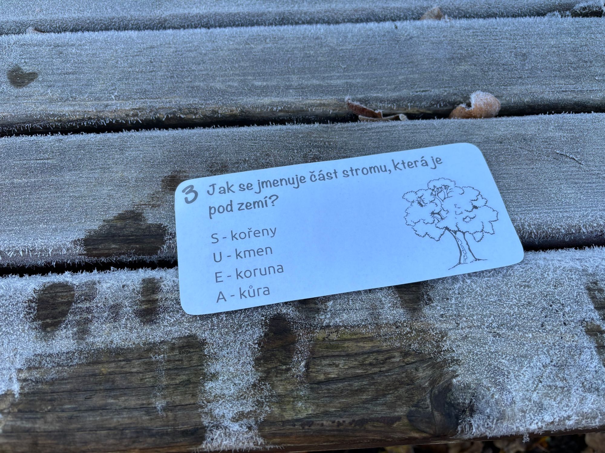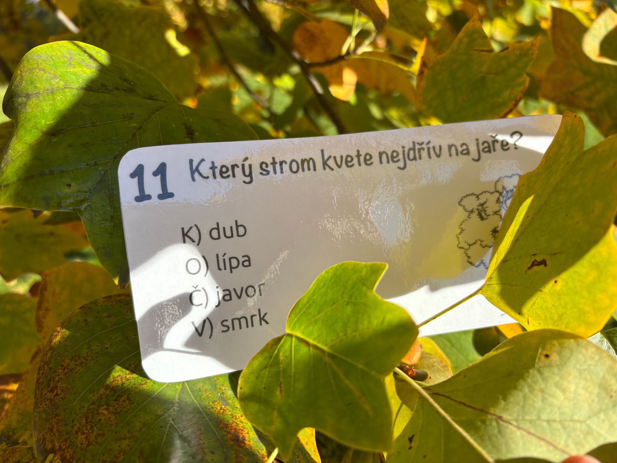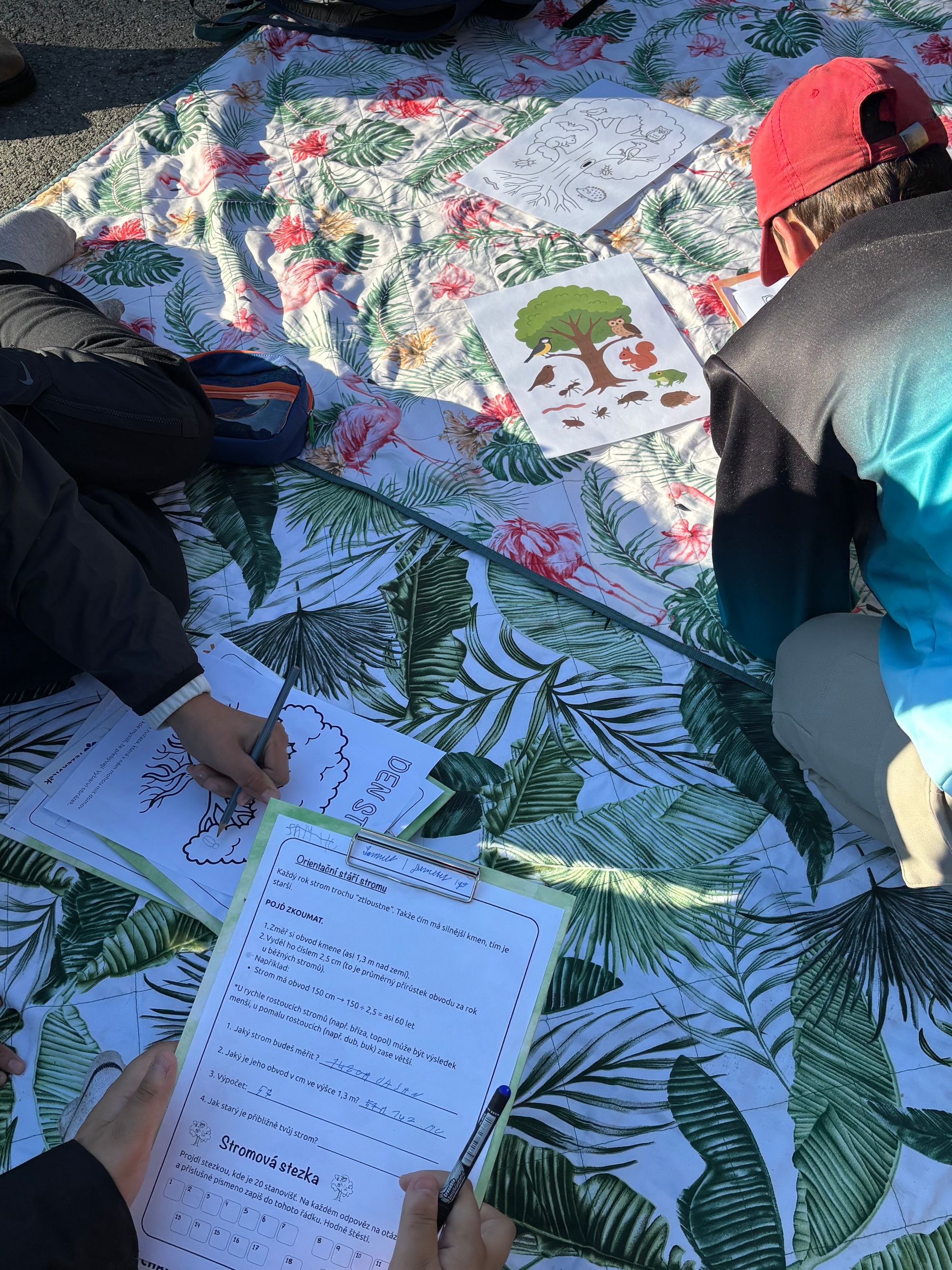 Následovala kreativní aktivita – žáci kreslili, jaká zvířata žijí na stromech a která se ukrývají v půdě nebo v dutinách stromů. Při kreslení si všichni uvědomili, kolik života strom poskytuje a jak je důležitý pro přírodu kolem nás. Další částí programu byla stezka s otázkami s možností výběru odpovědi. Z otázek žáci získali tajenku a první tři nejrychlejší, kteří měli všechny odpovědi správně, získali razítko navíc. Kdo něco nevěděl, mohl se podívat do nápovědy, takže se žáci učili i pracovat s textem a vyhledávat v něm. Při plnění úkolů, pokud chtěli vyhrát, musely děti rychle přecházet mezi jednotlivými stanovišti, což zajistilo pořádný pohyb.