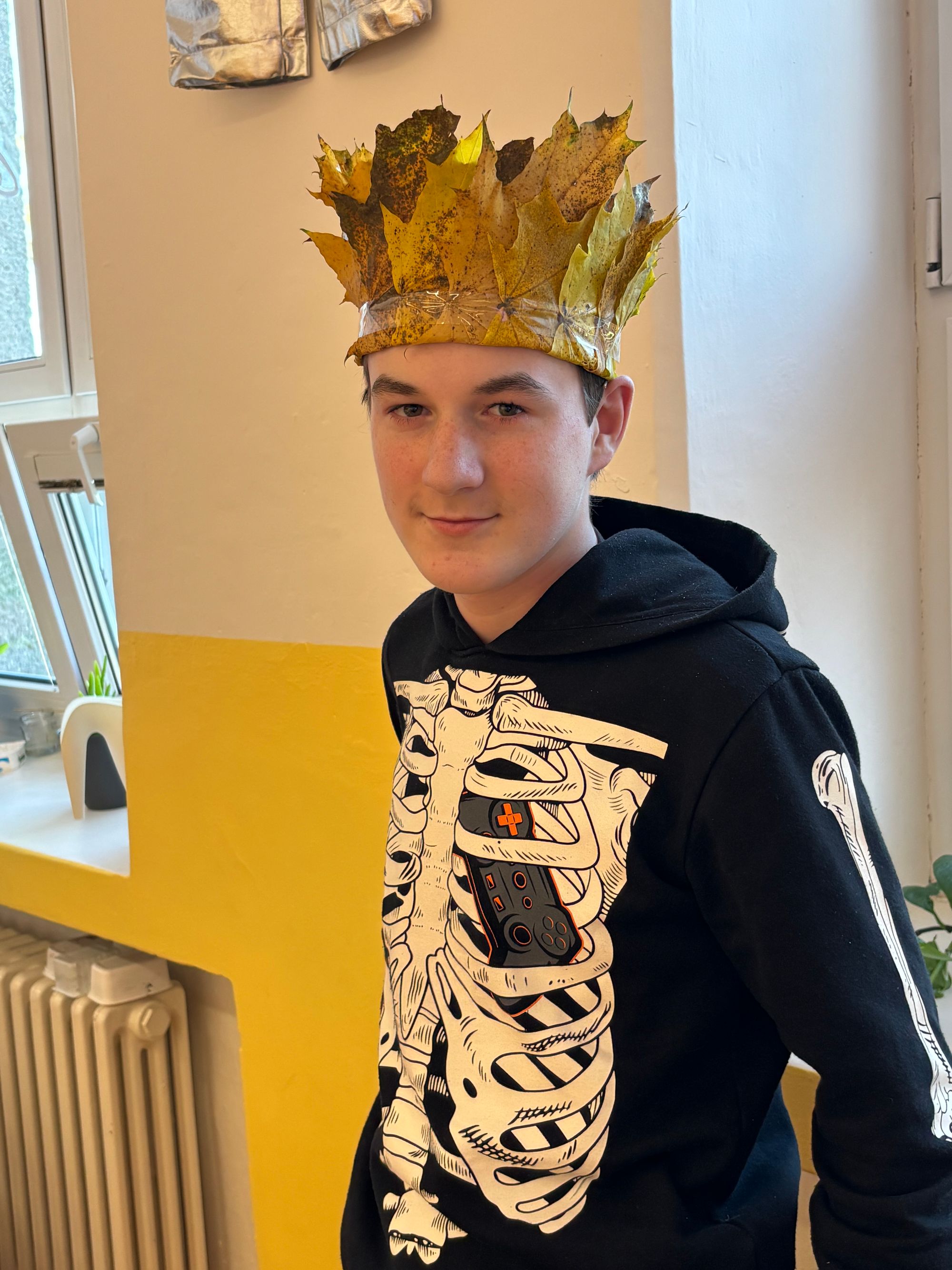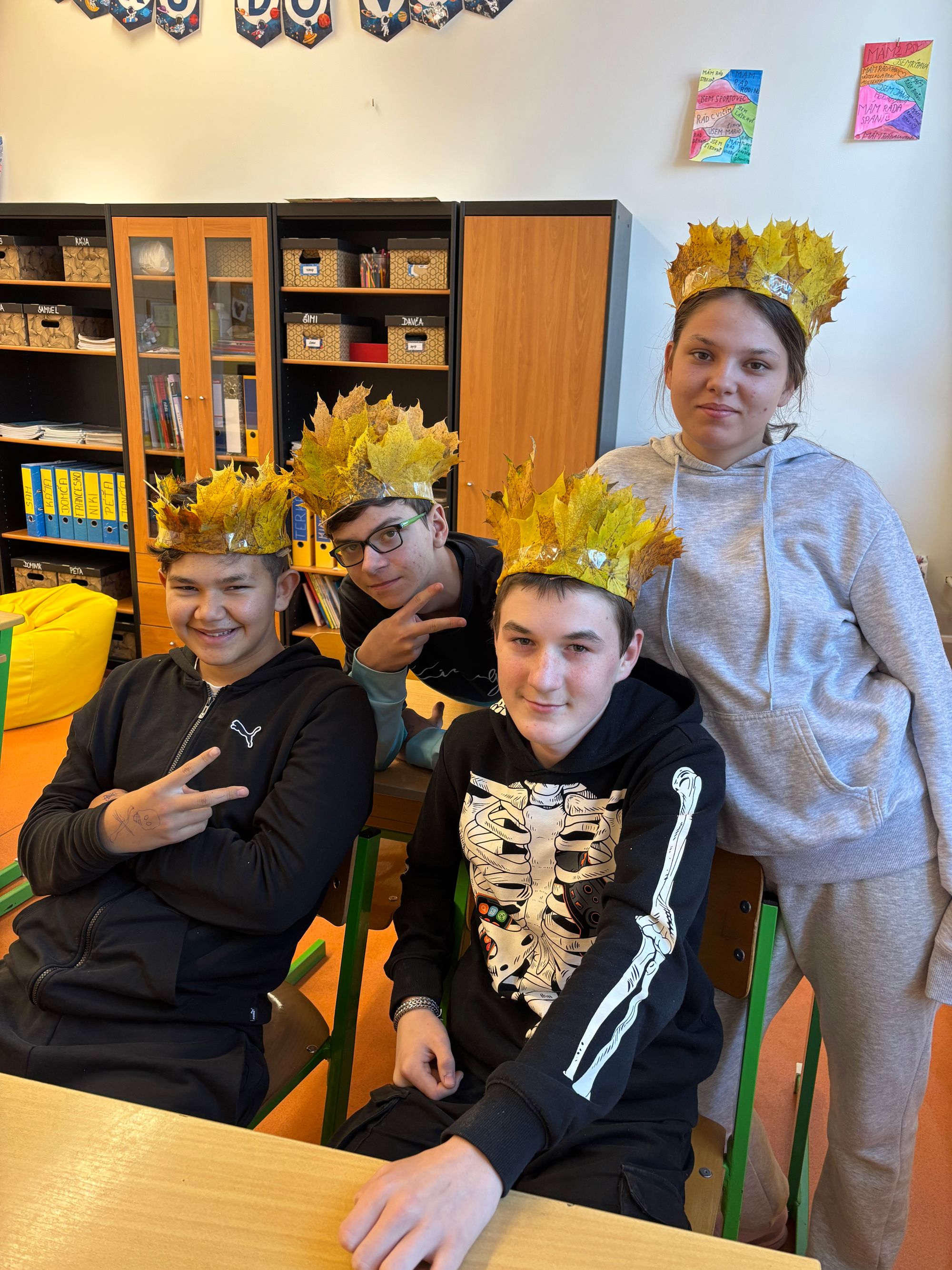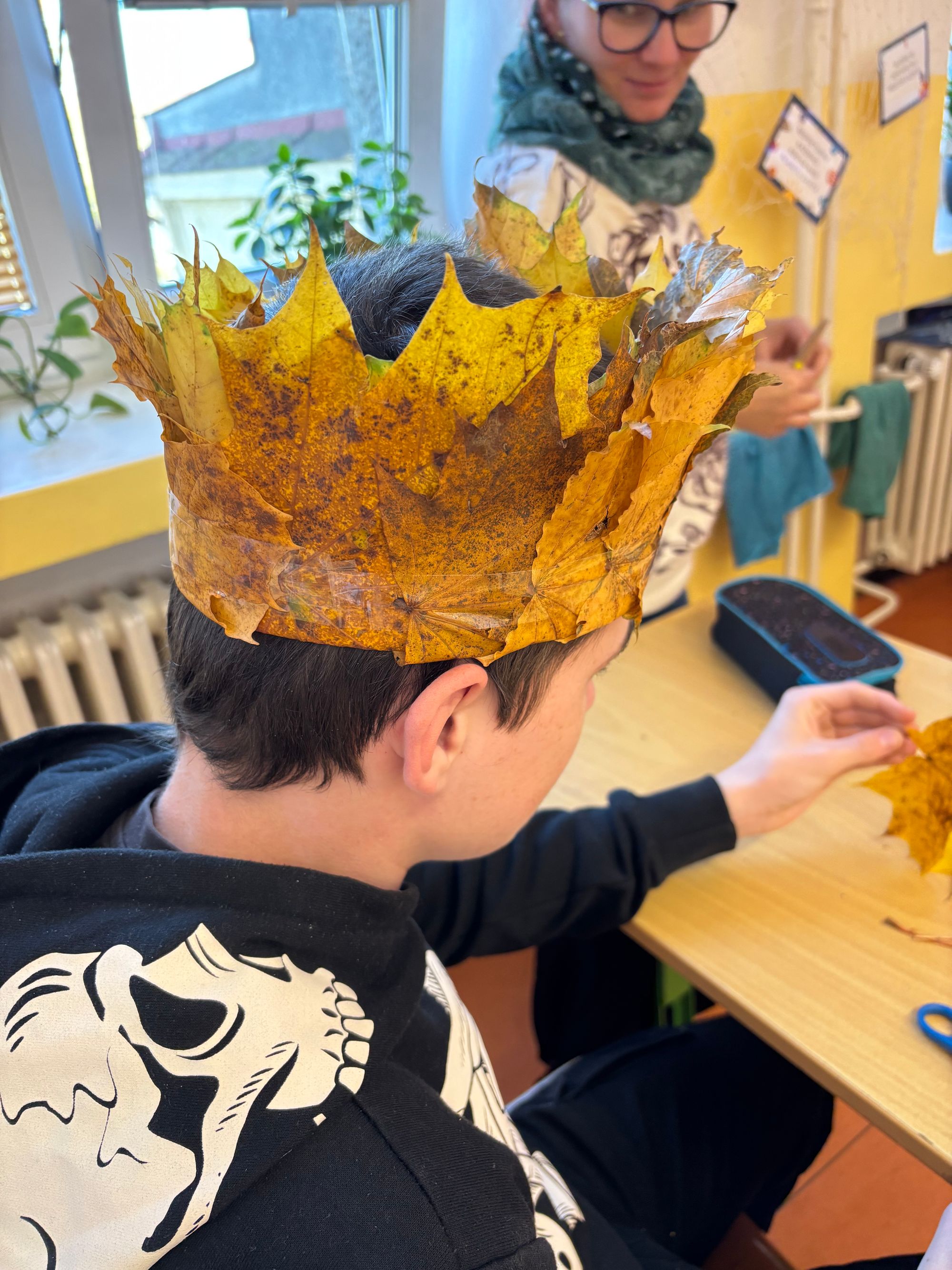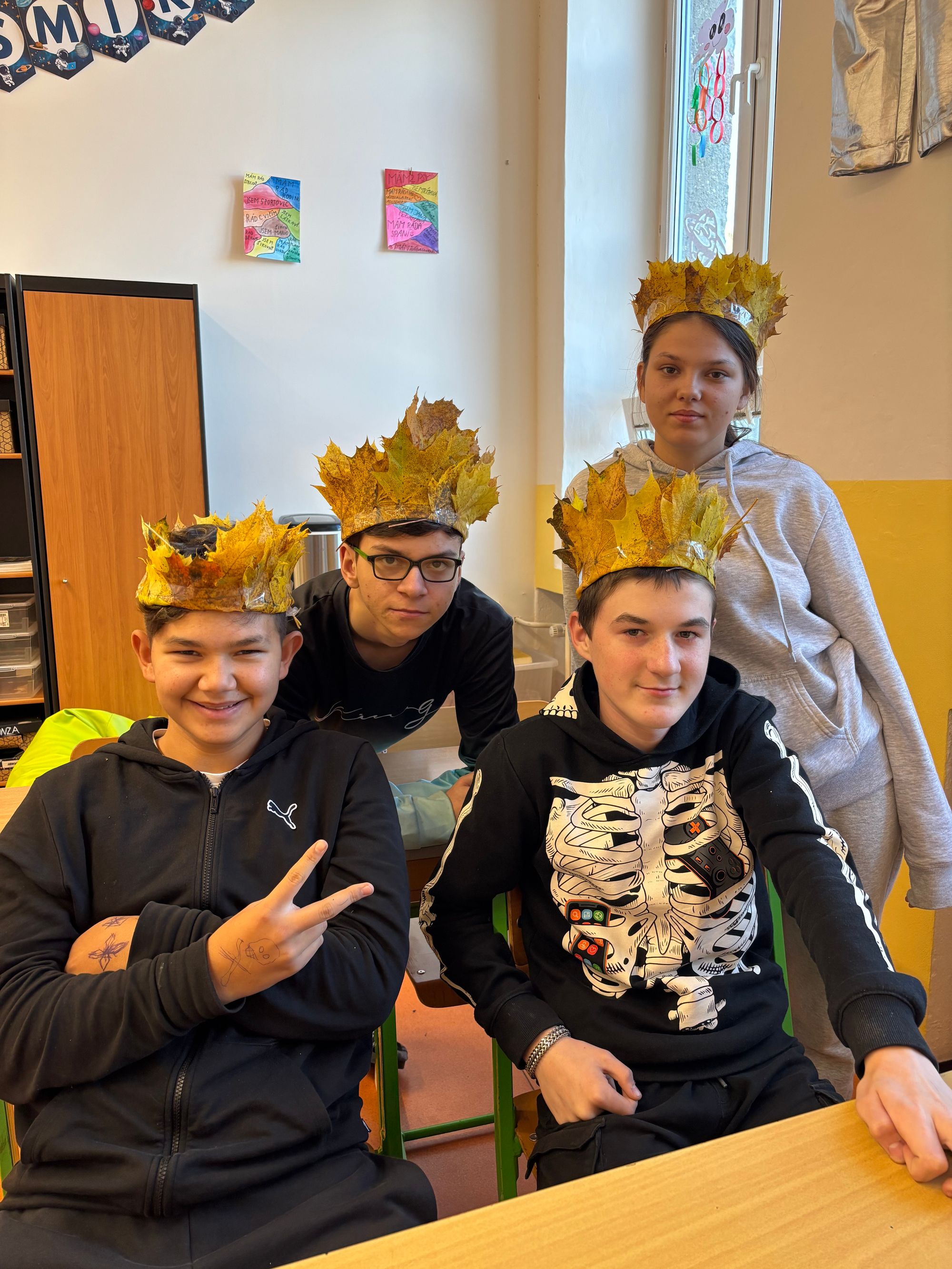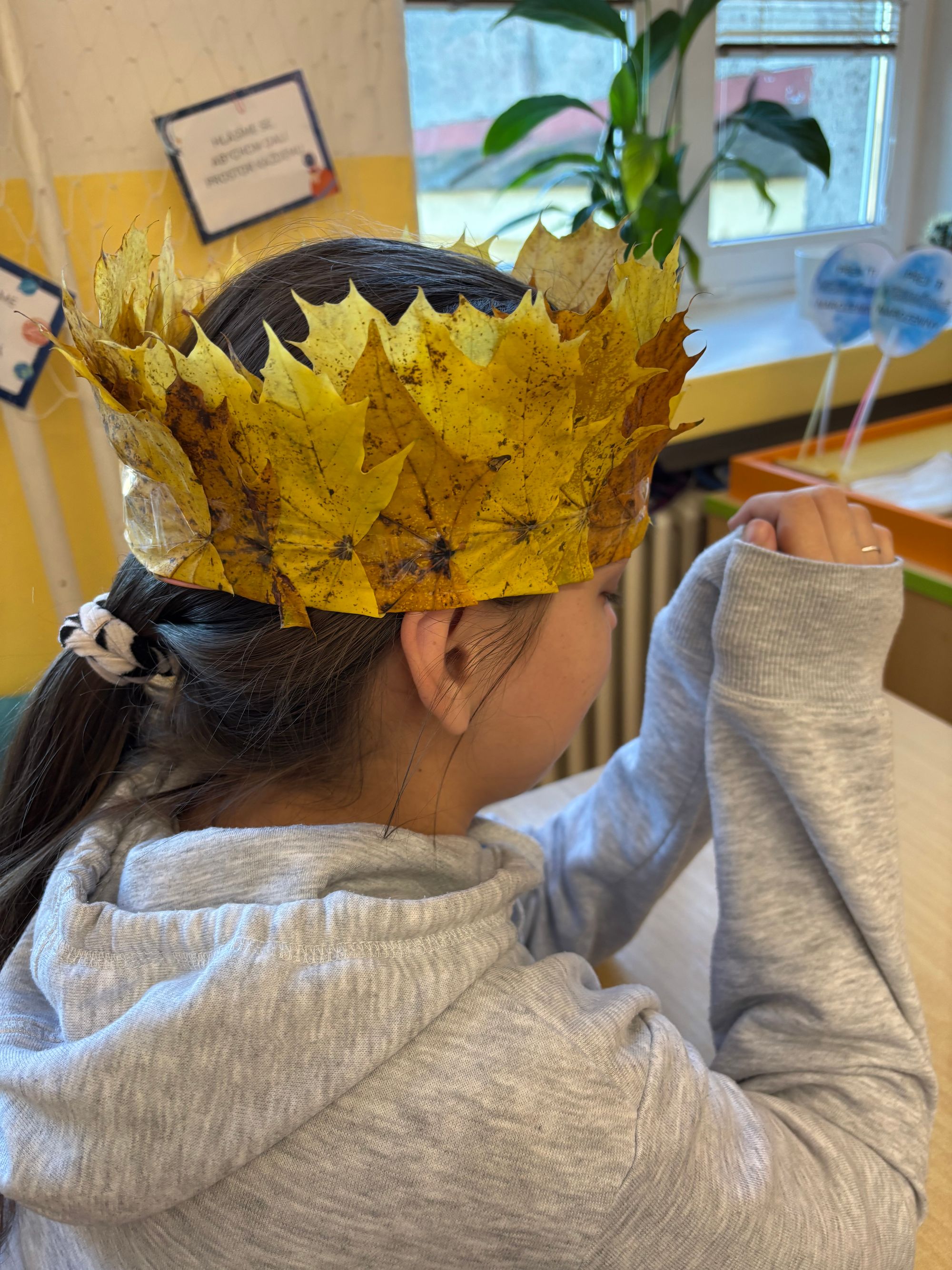 Cestou zpět do školy jsme ještě vytvořili hromadu z listí. Žáci si užívali dotyk a vůni podzimního listí a na závěr jsme si zahráli pravou podzimní bojovku. Listí jsme po sobě házeli a bavilo úplně všechny! Nakonec jsme ve škole z nasbíraných listů vyrobili podzimní koruny a další den v hodině přírodopisu jsme ještě doplnili znalosti – probírali jsme názvy stromů podle obrázků a jejich plodů.