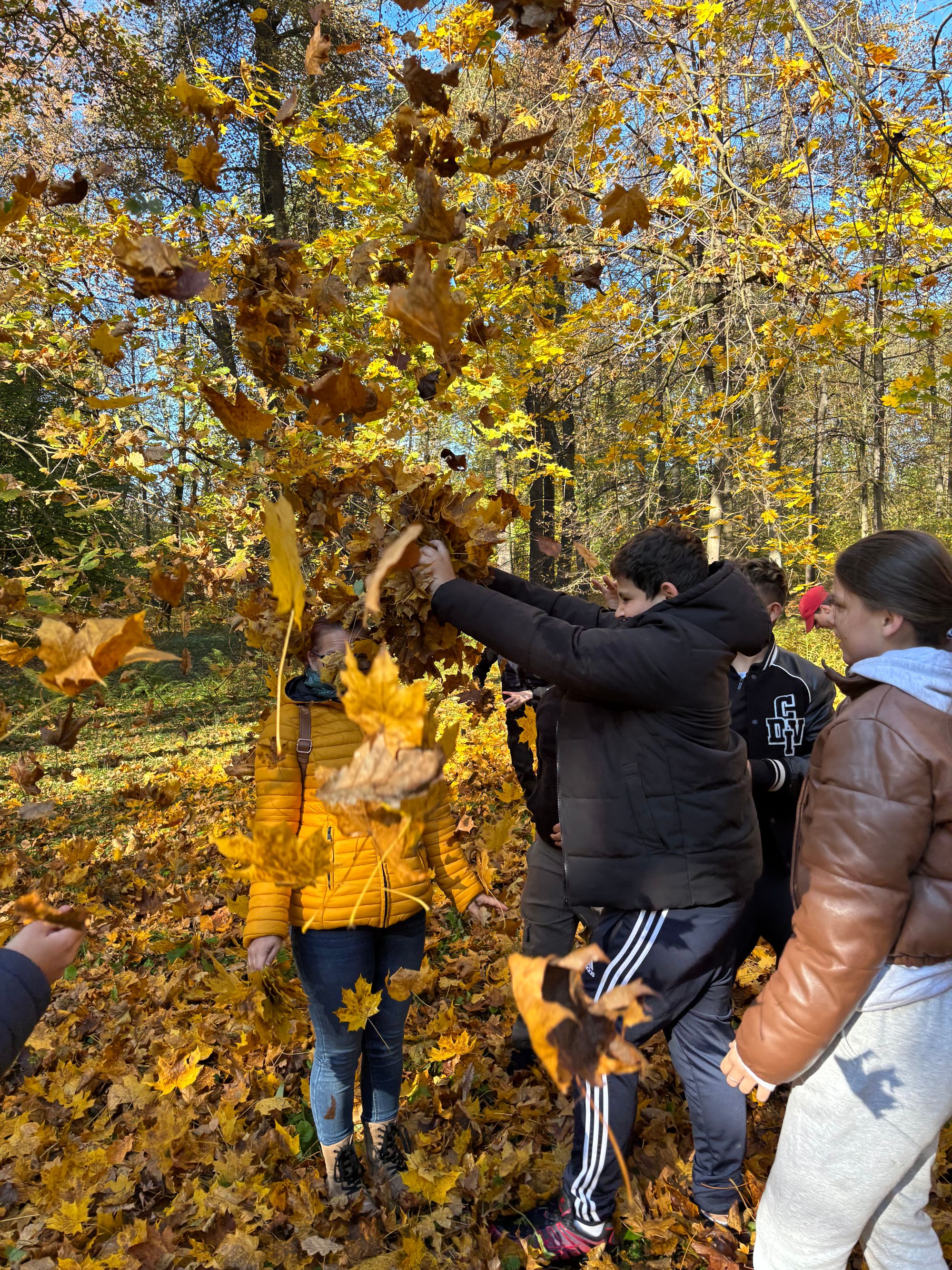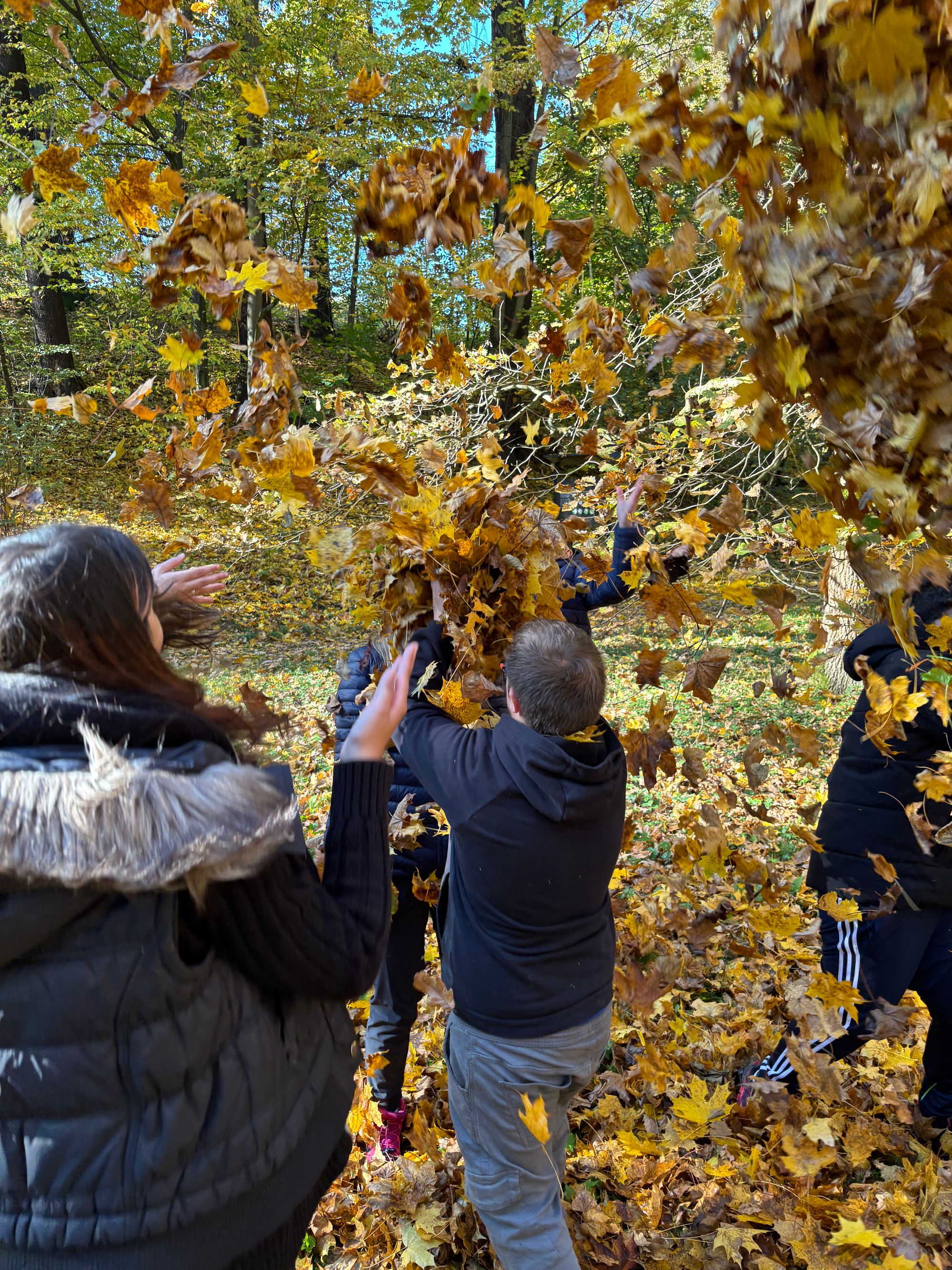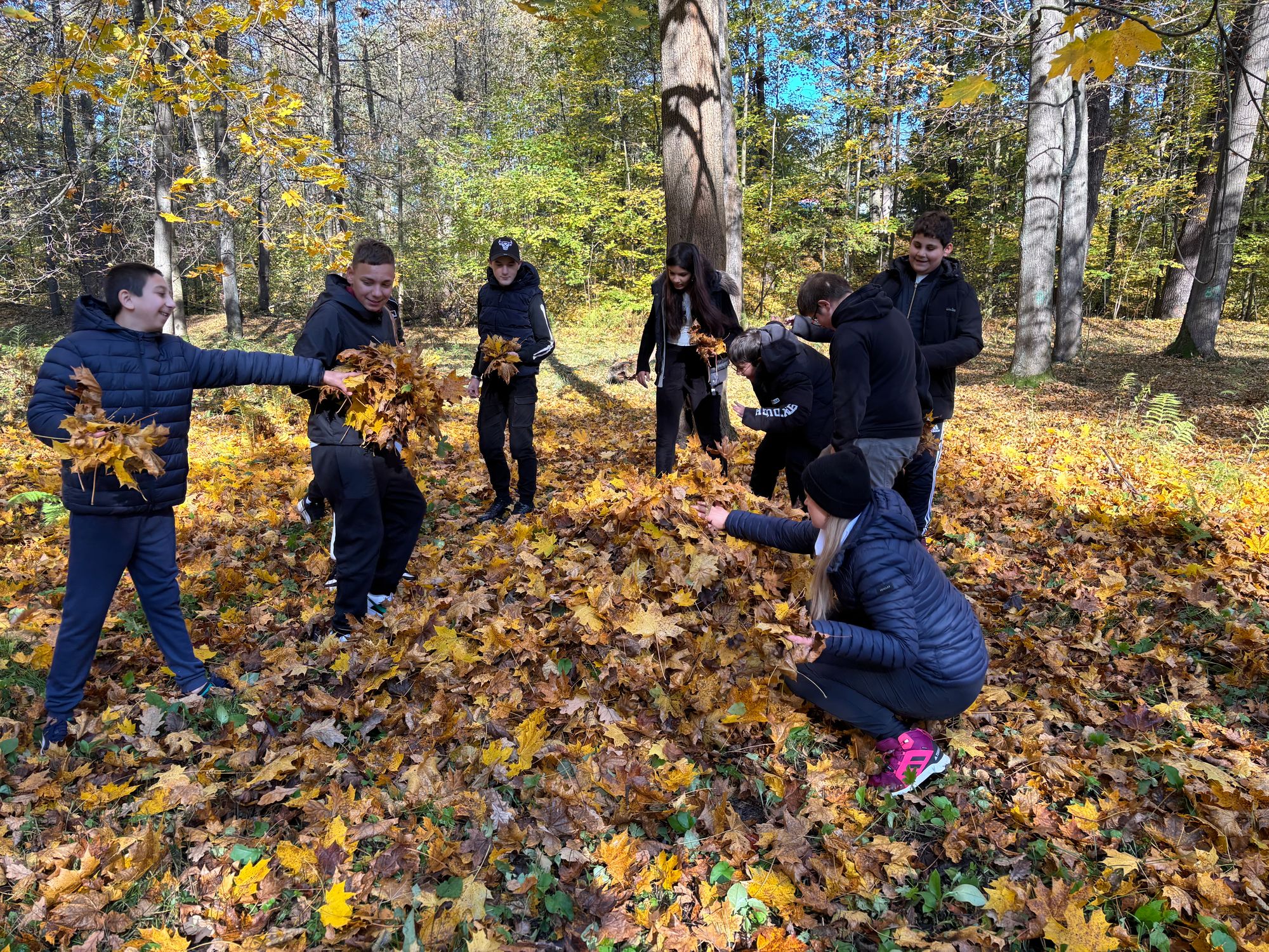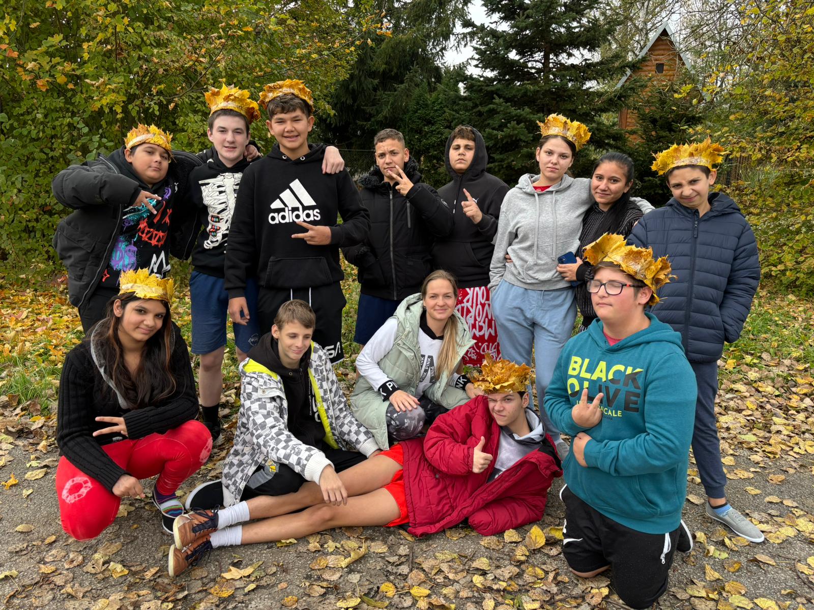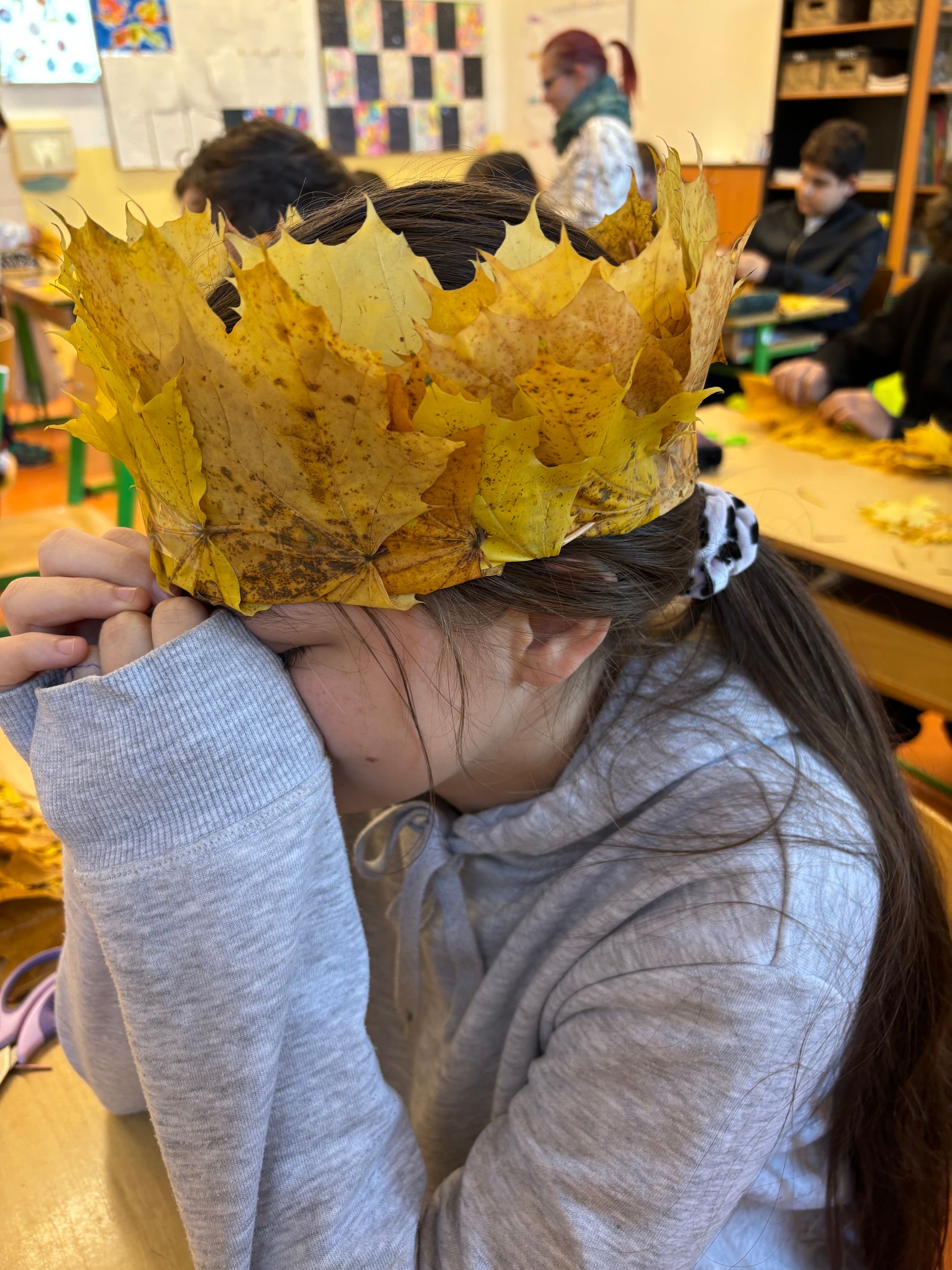 Cestou zpět do školy jsme ještě vytvořili hromadu z listí. Žáci si užívali dotyk a vůni podzimního listí a na závěr jsme si zahráli pravou podzimní bojovku. Listí jsme po sobě házeli a bavilo úplně všechny! Nakonec jsme ve škole z nasbíraných listů vyrobili podzimní koruny a další den v hodině přírodopisu jsme ještě doplnili znalosti – probírali jsme názvy stromů podle obrázků a jejich plodů.