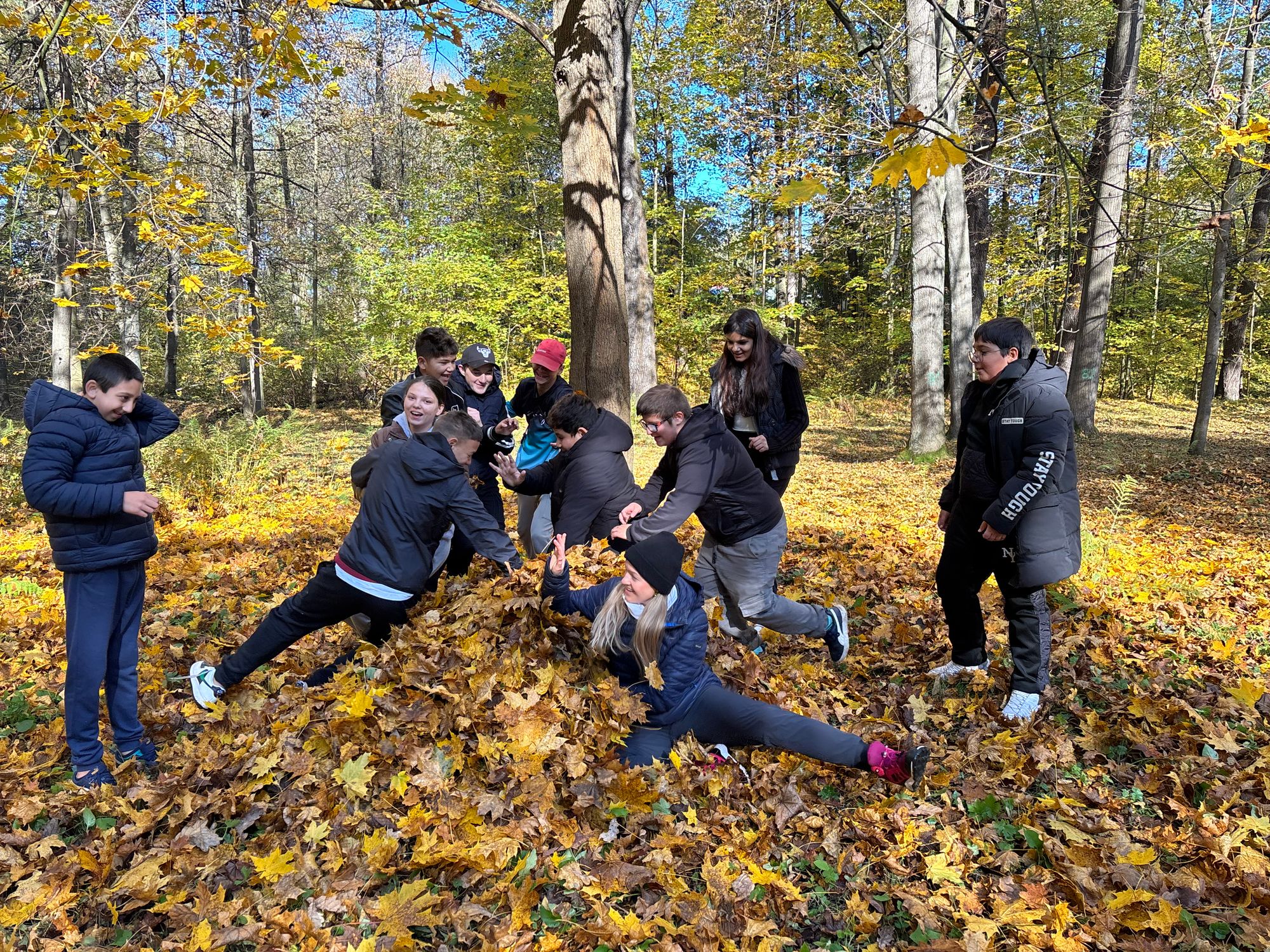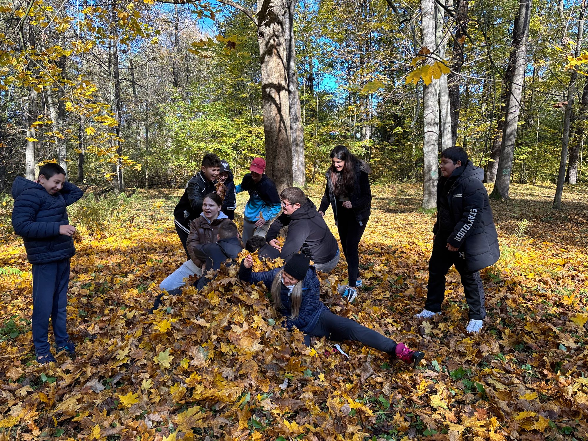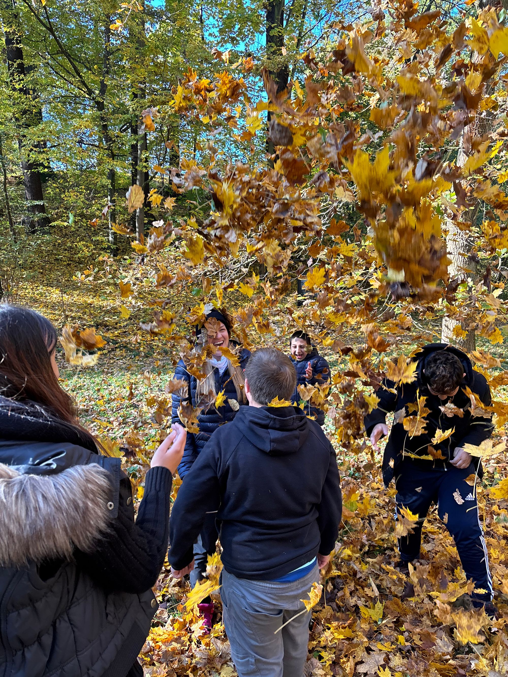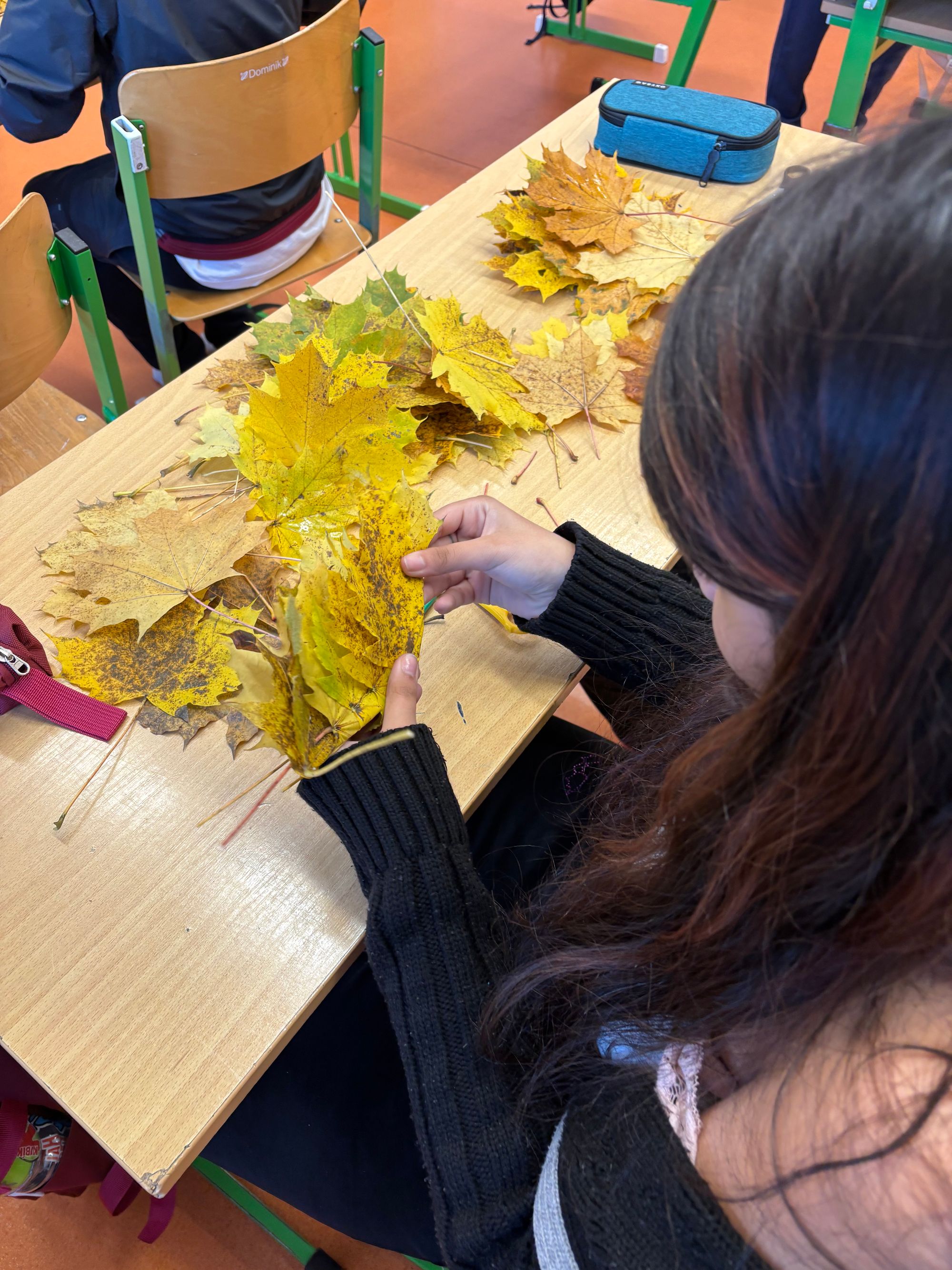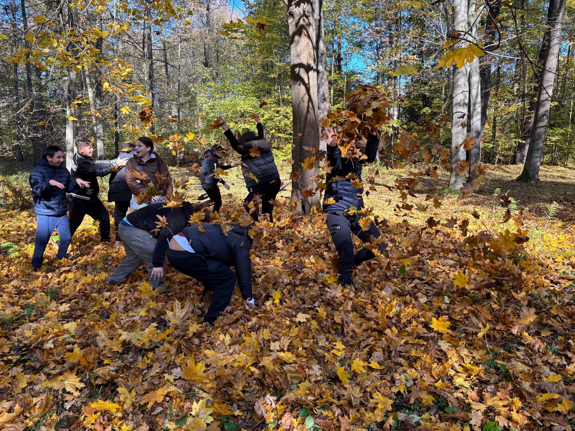 Cestou zpět do školy jsme ještě vytvořili hromadu z listí. Žáci si užívali dotyk a vůni podzimního listí a na závěr jsme si zahráli pravou podzimní bojovku. Listí jsme po sobě házeli a bavilo úplně všechny! Nakonec jsme ve škole z nasbíraných listů vyrobili podzimní koruny a další den v hodině přírodopisu jsme ještě doplnili znalosti – probírali jsme názvy stromů podle obrázků a jejich plodů.