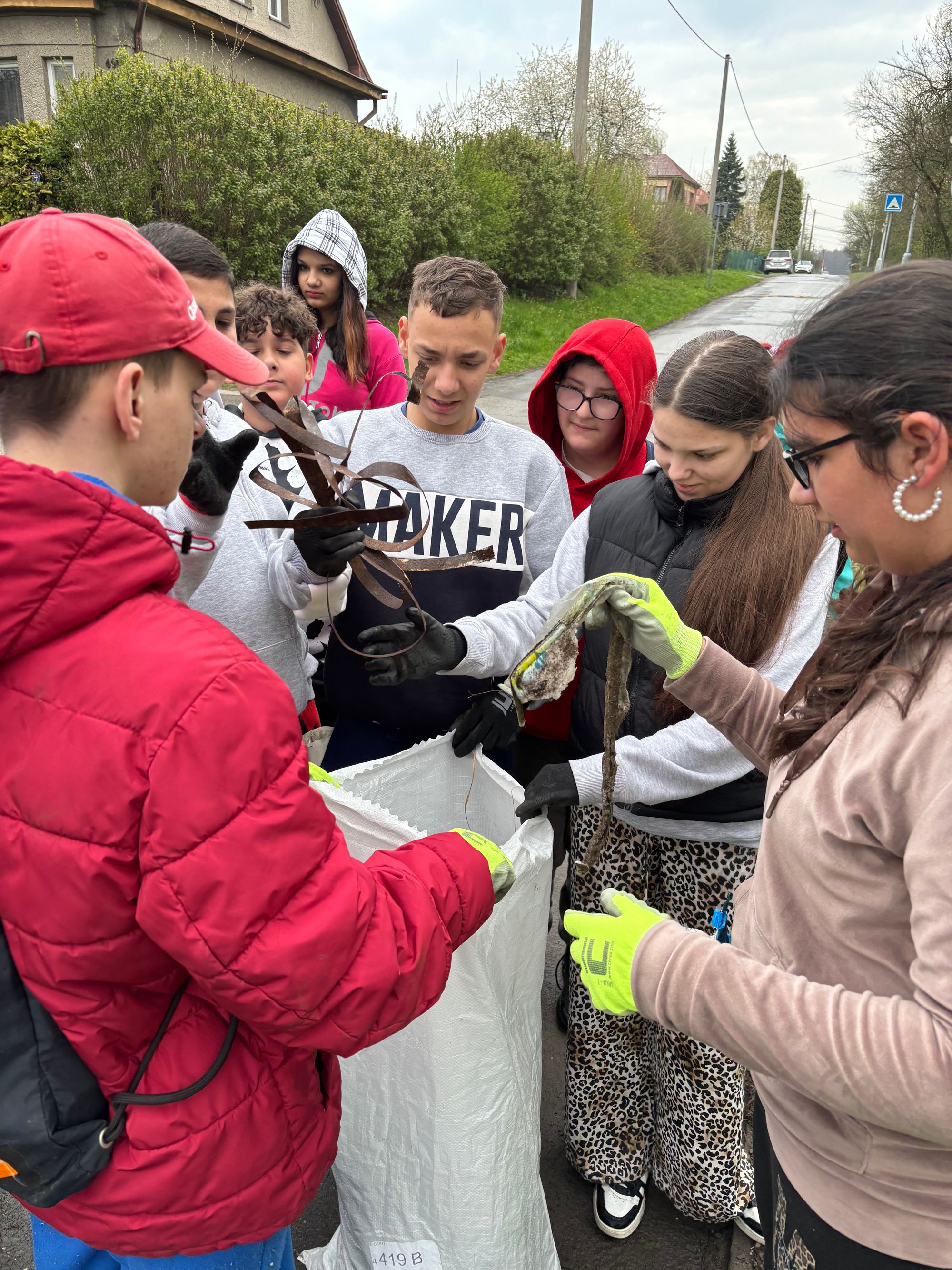 Letos se do úklidu zapojilo 11 žáků a 2 pedagogové. Přestože nás před začátkem akce přivítalo deštivé počasí, nikoho to neodradilo. Žáci se na úklid těšili, a tak jsme ihned po dešti vyrazili. Všichni pracovali s nadšením a s velkým nasazením vyuklízeli ulici Sadovou až k Zimnímu stadionu. Během úklidu jsme nasbírali 6 plných pytlů odpadu. Ačkoliv byl počet pytlů menší než v minulých letech, o zajímavé „nálezy“ rozhodně nebyla nouze. Mezi největší kuriozity patřila stará mikrovlnná trouba nebo dokonce dětský kočárek. Je až smutné, kolik odpadu lidé bezohledně odhazují do přírody. Často k tomu využívají místa za garážemi nebo lesní zákoutí, kam odpad jednoduše vysypou a nechají být.